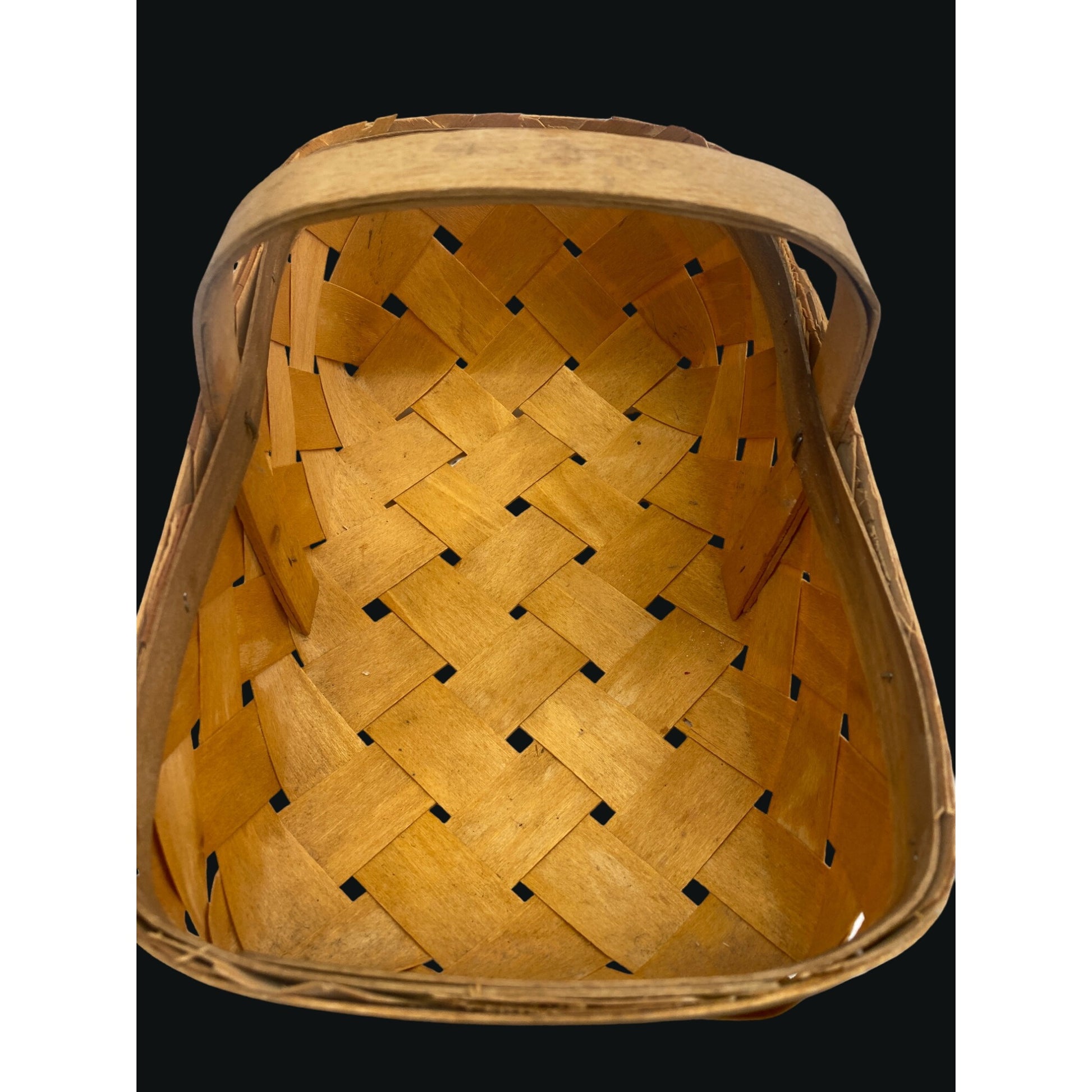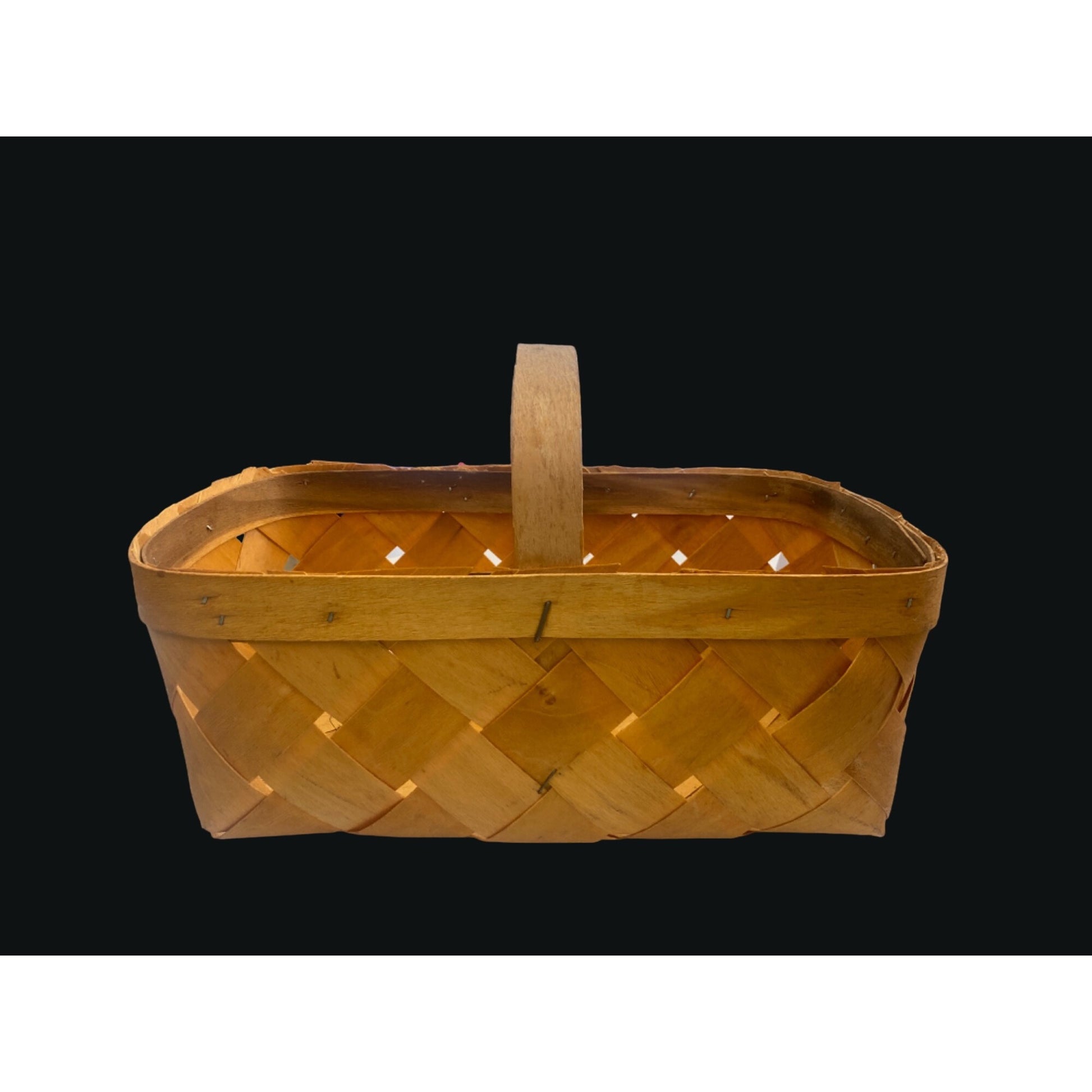 Vintage Handwoven Wooden Picnic Basket With Sturdy Handle