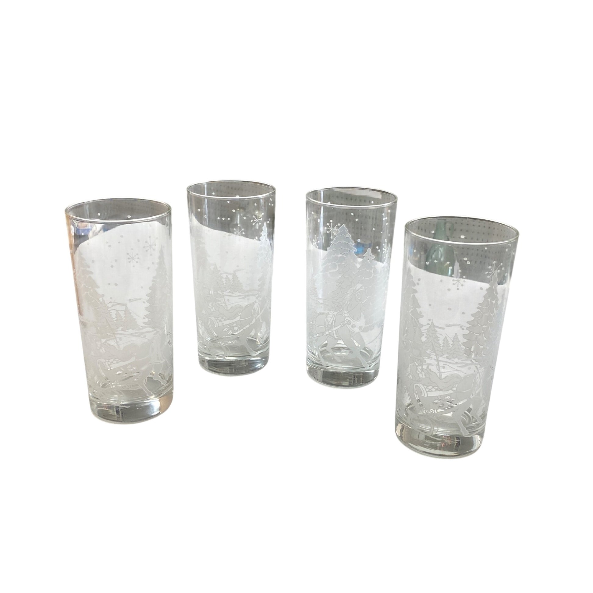 Celebrate the holiday season with this vintage set of four frosted glasses. Intricate winter scene designs elevate your dining experience, making every sip feel special. Ideal for collectors and those who appreciate unique holiday-themed glassware. Add a touch of nostalgia to your gatherings.