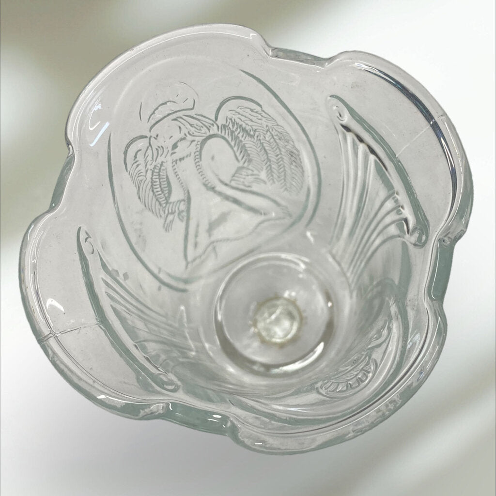 Vintage Homco Glass Embossed Angel Votive Cup Ped Candle Holde Sconce
