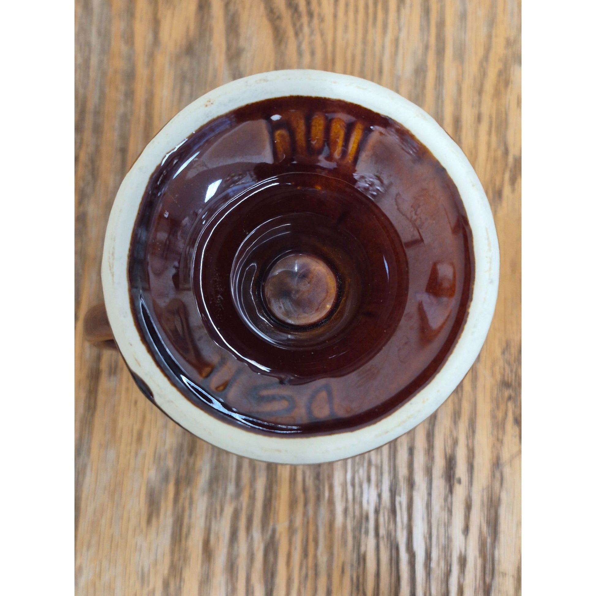 This vintage Hull USA brown drip glaze Irish pedestal mug is a perfect collectible for pottery enthusiasts. Its unique design and rich colors make it a standout piece for any kitchen or display.