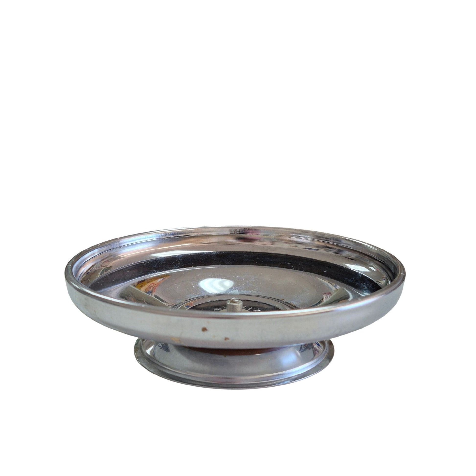 Vintage Kromex Glass Divided Serving Tray Metal Base