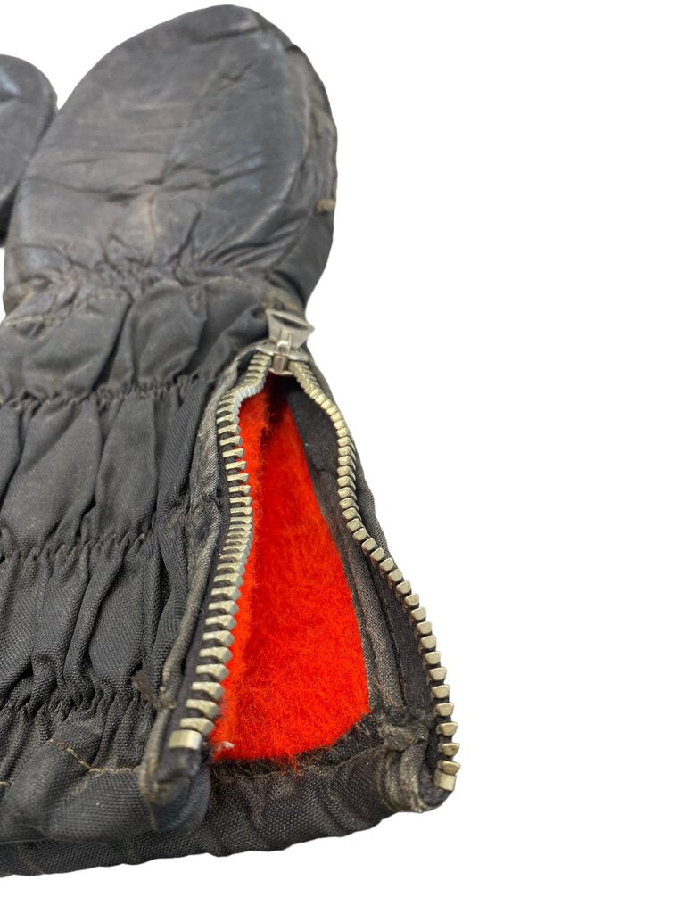 Vintage Leather Gloves Snowmobile Snow Mittens Red Fleece Lined Small / Med