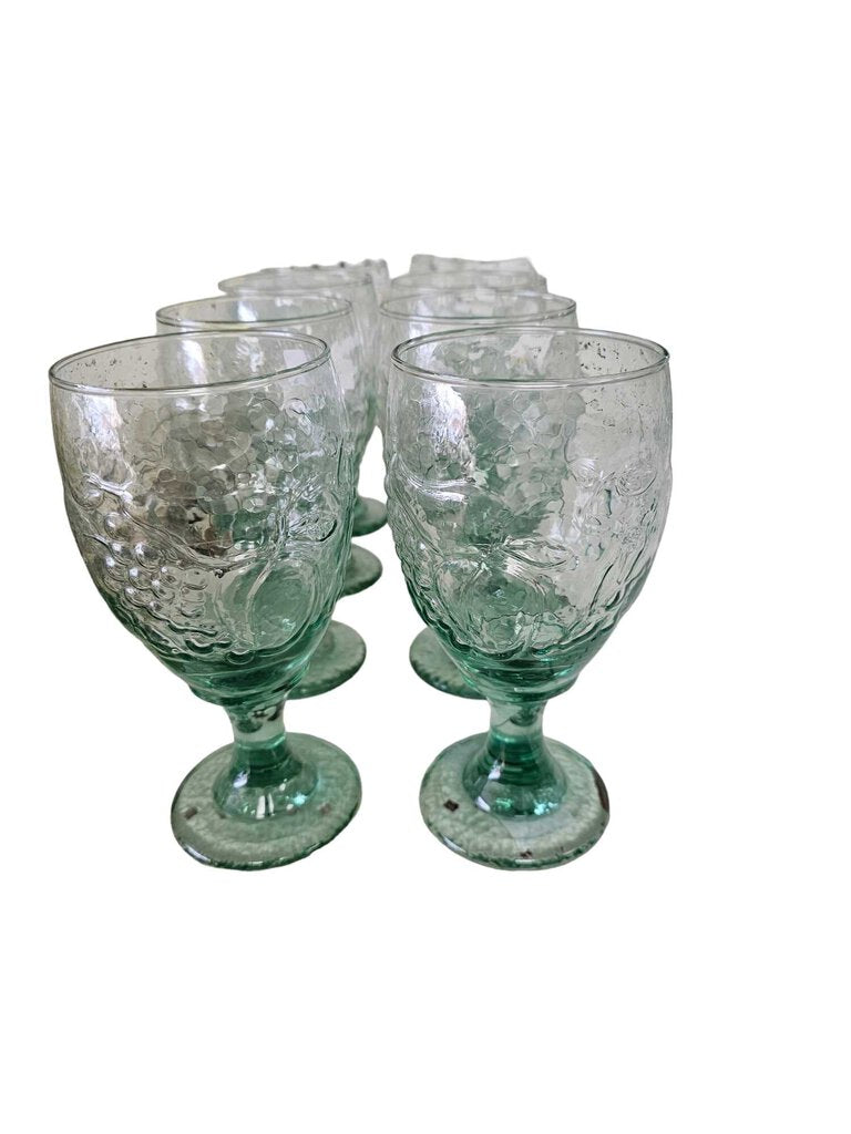 Vintage Libby Spanish Green Glass Orchard Fruit Iced Tea, Water Goblet, Set 8