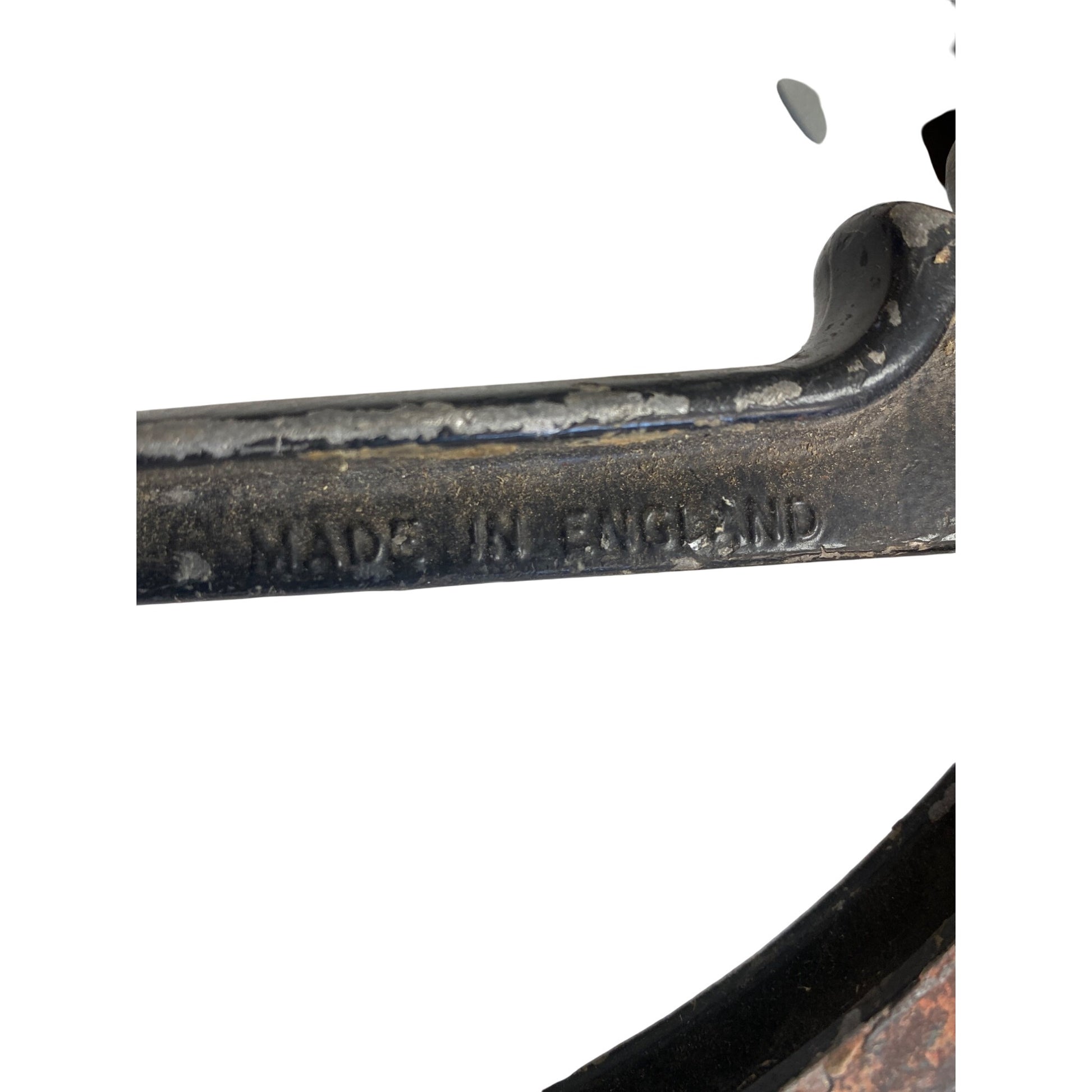Visible rust and wear on the surface, consistent with age and use. Handle to tip = 14 inches.