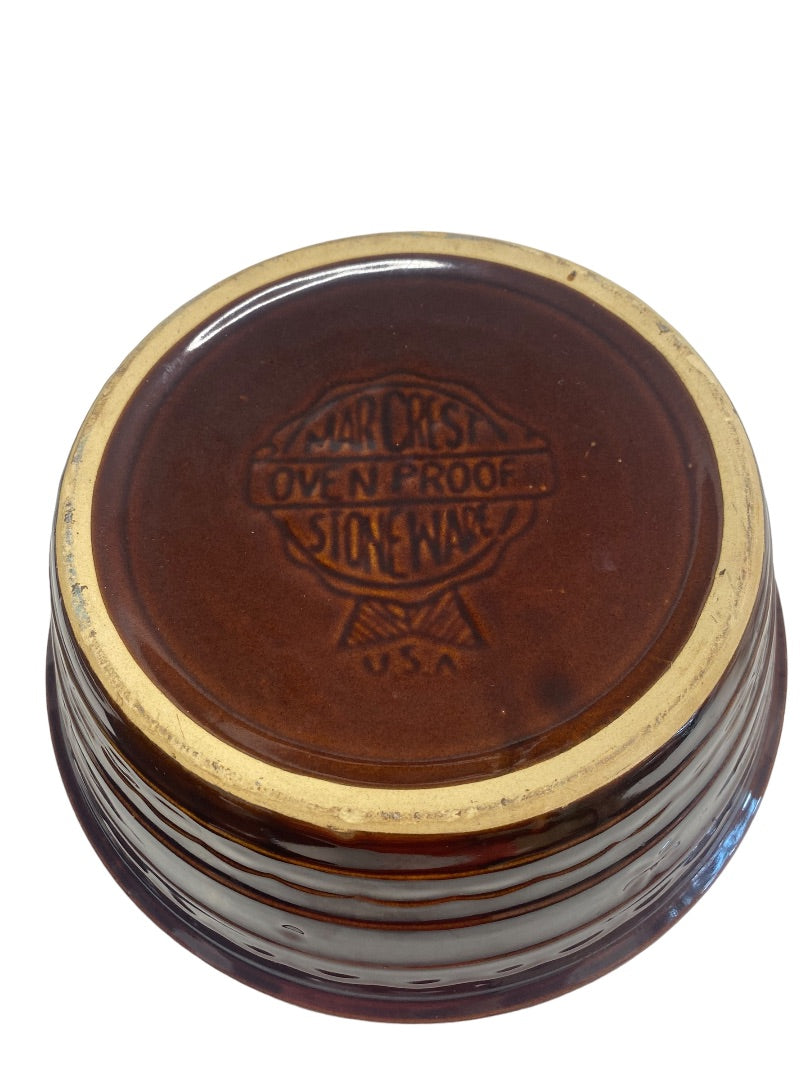 Vintage Marcrest Oven Proof Stoneware Daisy Dot Brown Bowl 9.5"