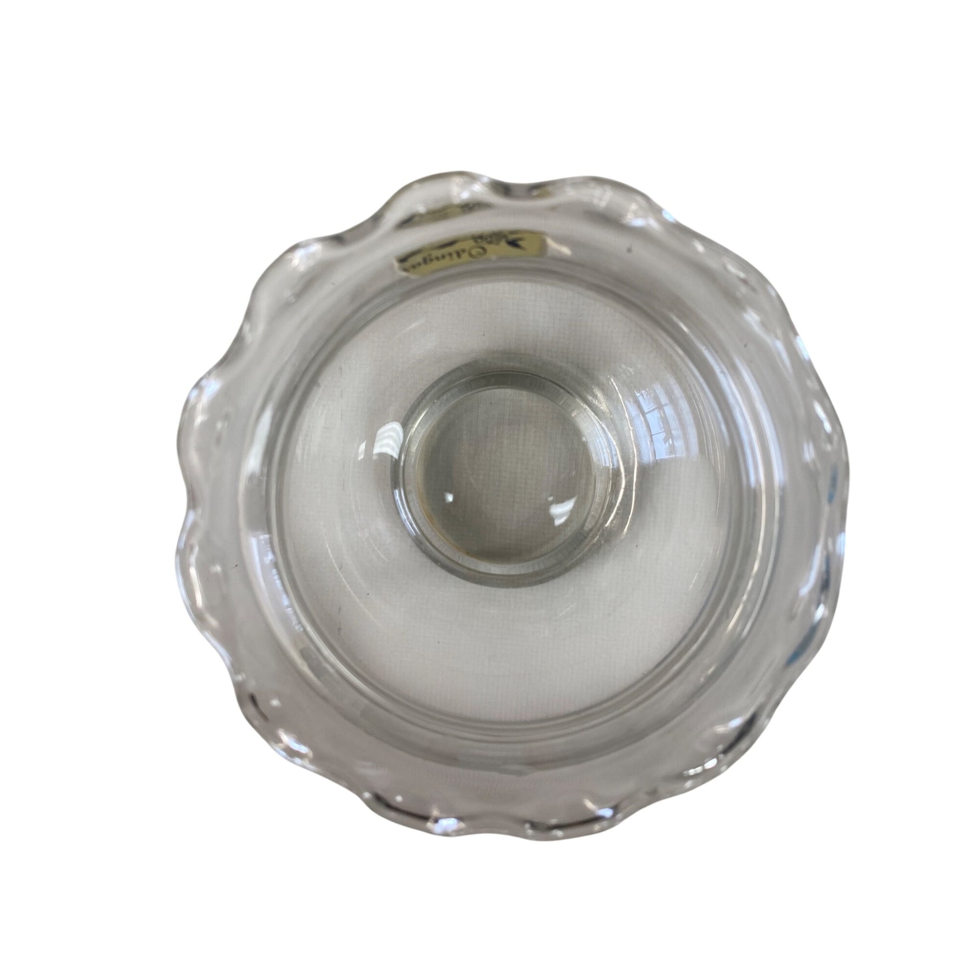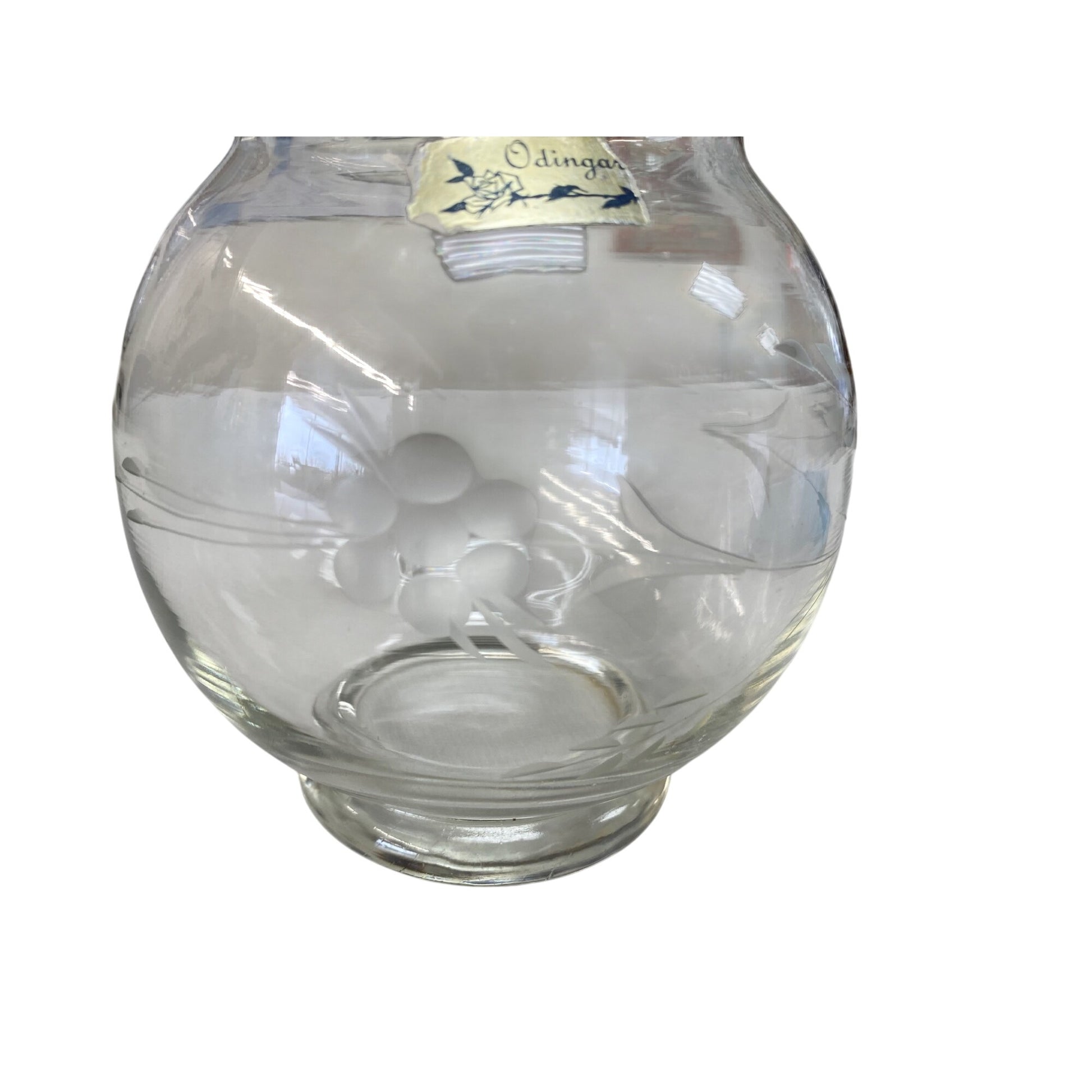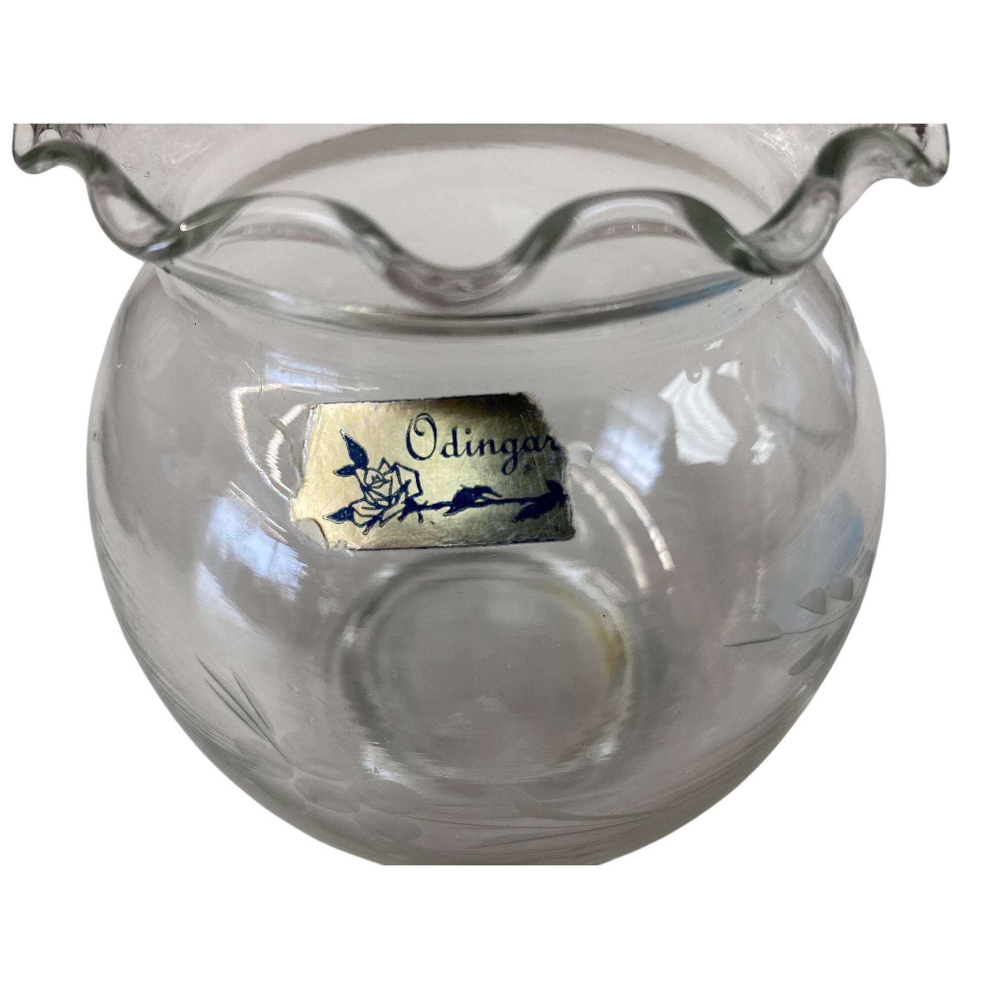 Vintage Odinger Clear Glass Etched Vase With Ruffled Edge