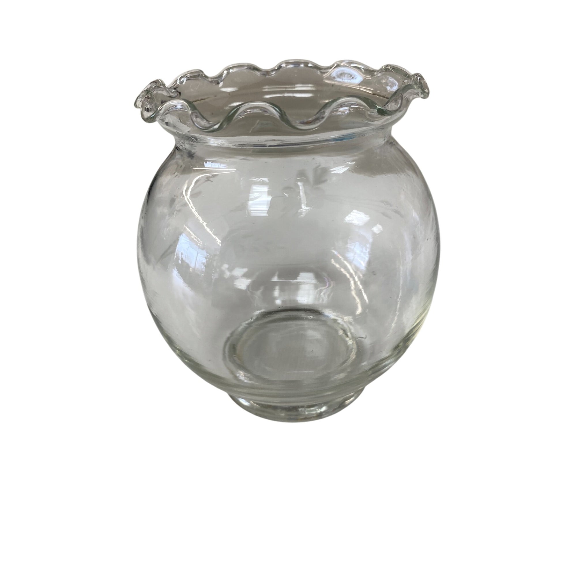 Add a touch of elegance to your home with this exquisite clear glass vase from Odinger, featuring intricate etching and a charming ruffled edge. Its vintage appeal and timeless design make it an ideal centerpiece or accent piece in any room, enhancing your decor with sophistication.
