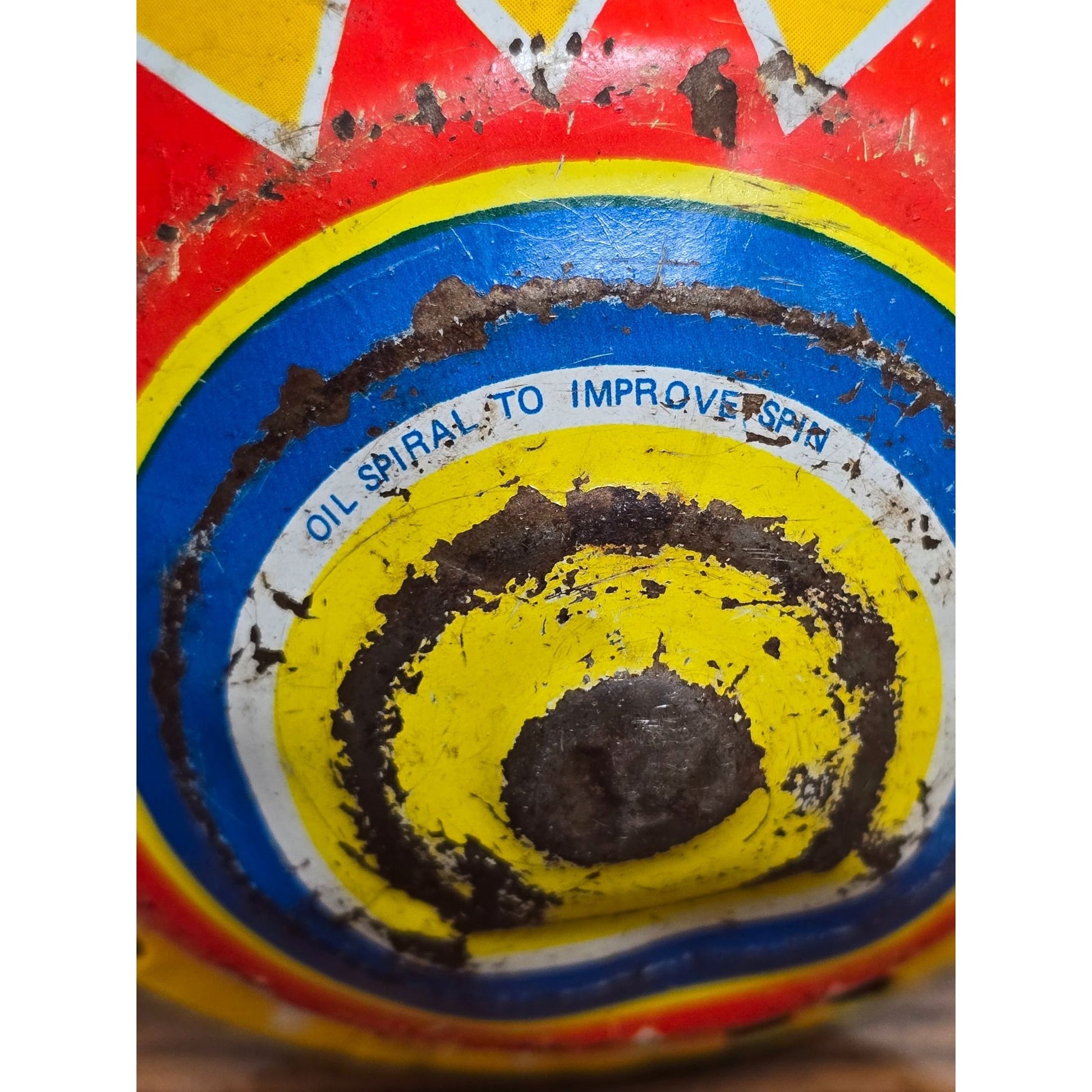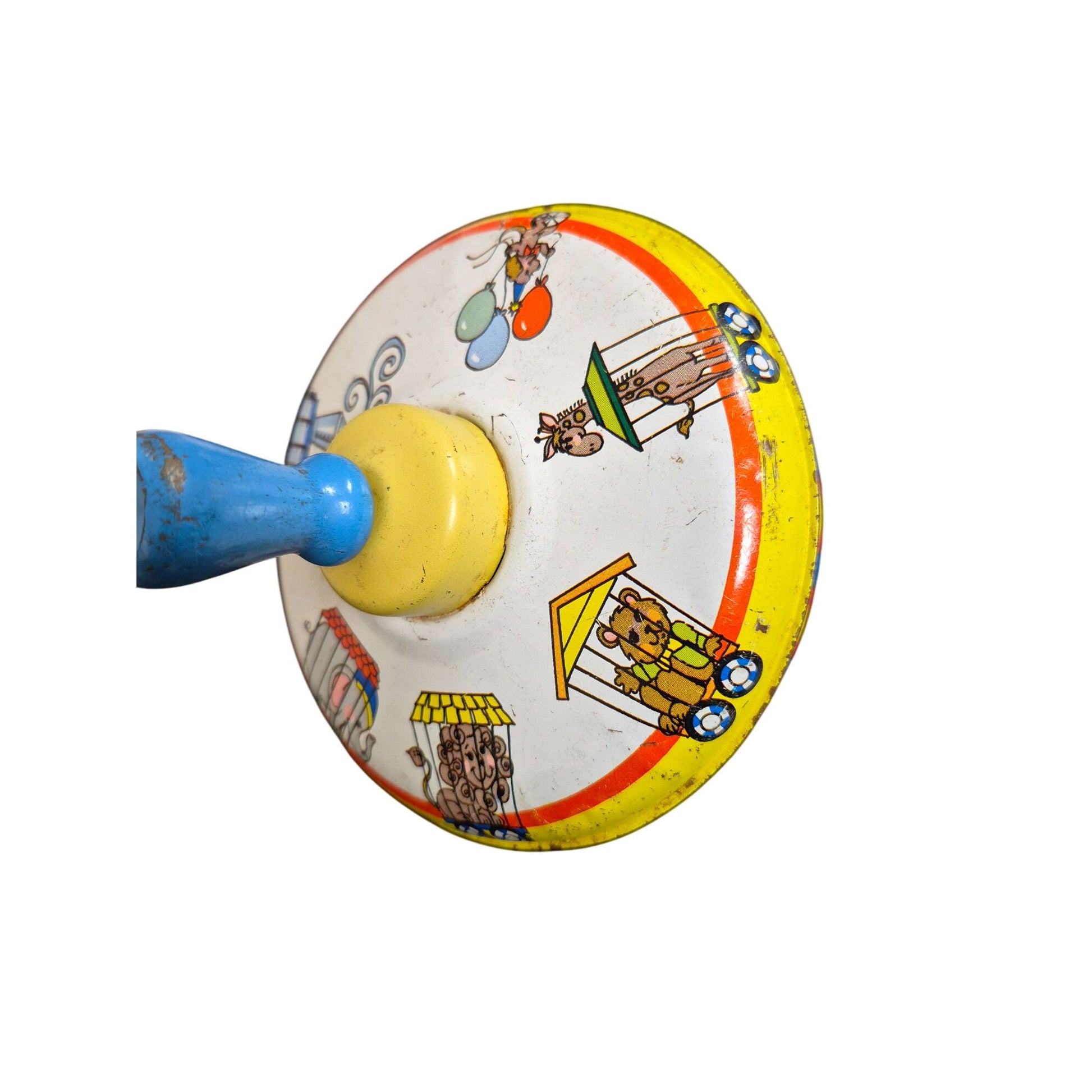 Vintage Ohio Art Company Metal Spinning Top Toy With Circus Train Design