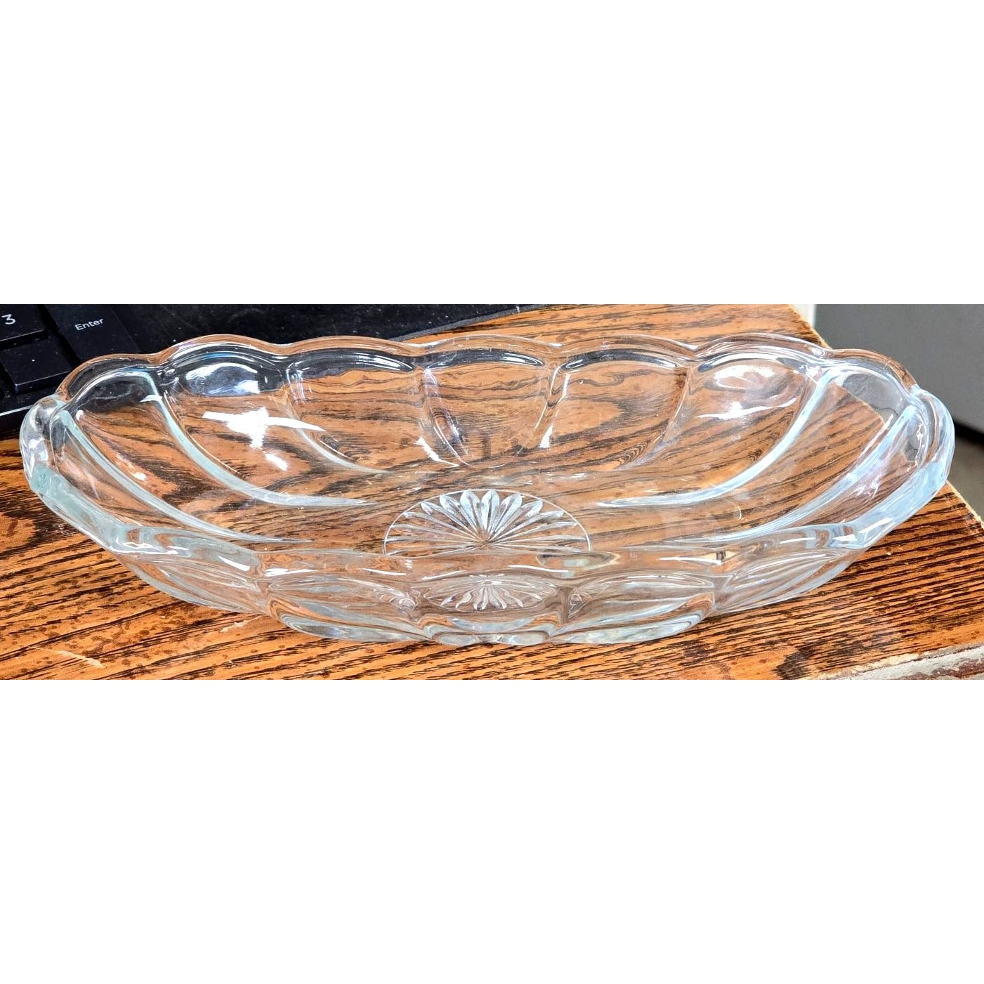 Elevate your table setting with this exquisite vintage glass dish, transforming ordinary dining into an extraordinary experience. Its intricate sunburst design and graceful oval shape whisper of timeless elegance, making it an essential piece for those who appreciate refined tableware.