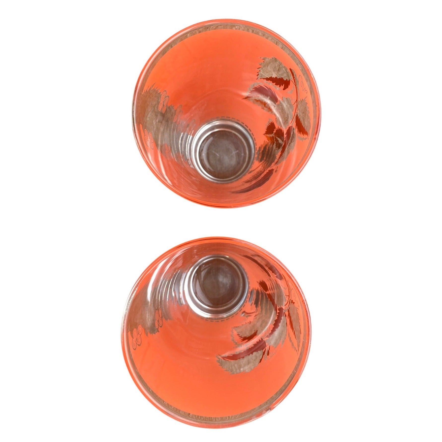 Elevate your drinkware collection with this elegant pair of vintage pink glass tumblers. Adorned with silver floral designs, they add charm to any table setting.