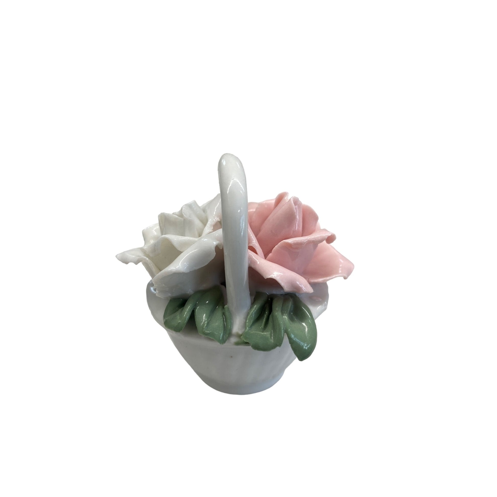 Vintage Porcelain Floral Basket With Pink & White Roses Silvestri