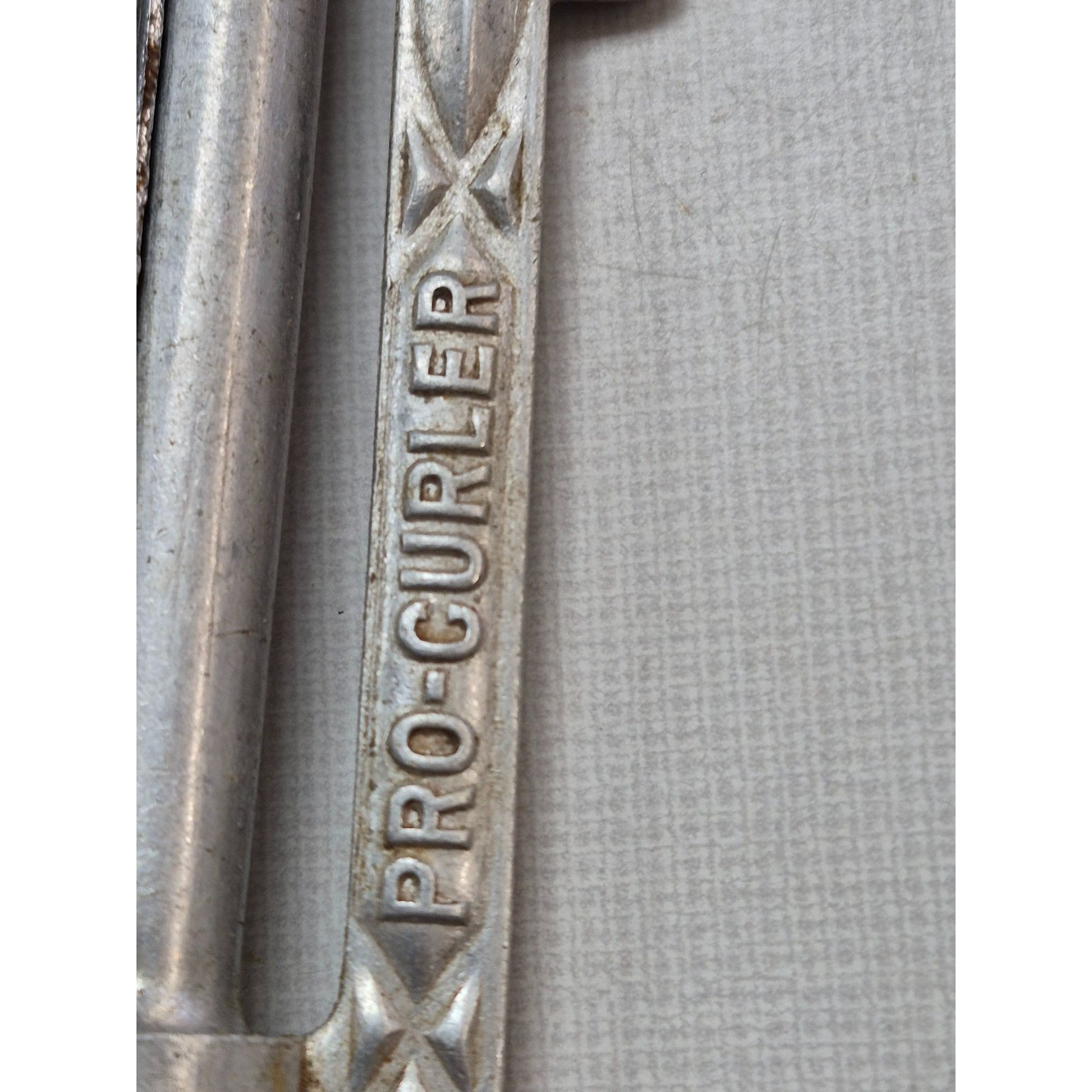 This vintage Pro-Curler hair curling iron set offers a touch of nostalgia with its manual operation. Ideal for collectors or those interested in retro styling tools, these curlers provide a unique hair styling experience. Their durable metal construction ensures longevity, making them a valuable addition to any collection.