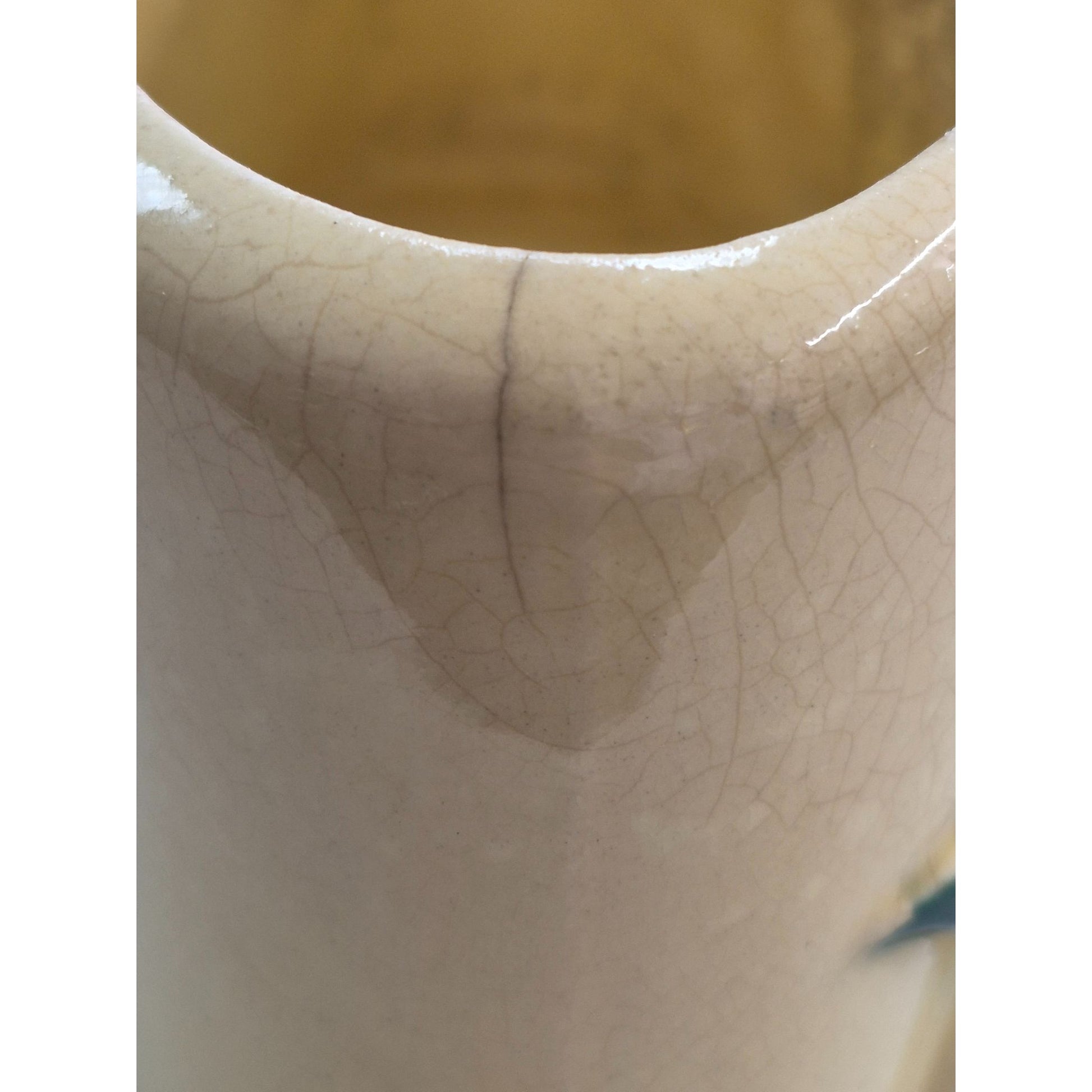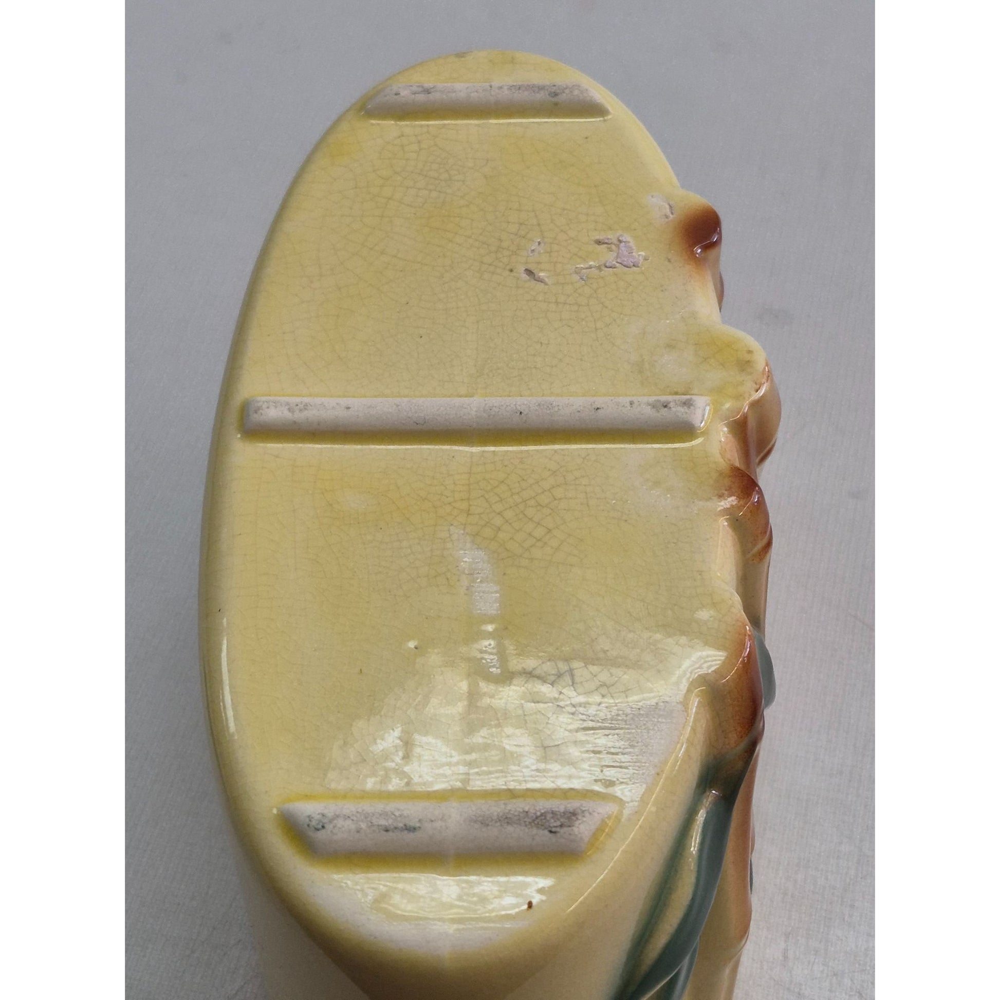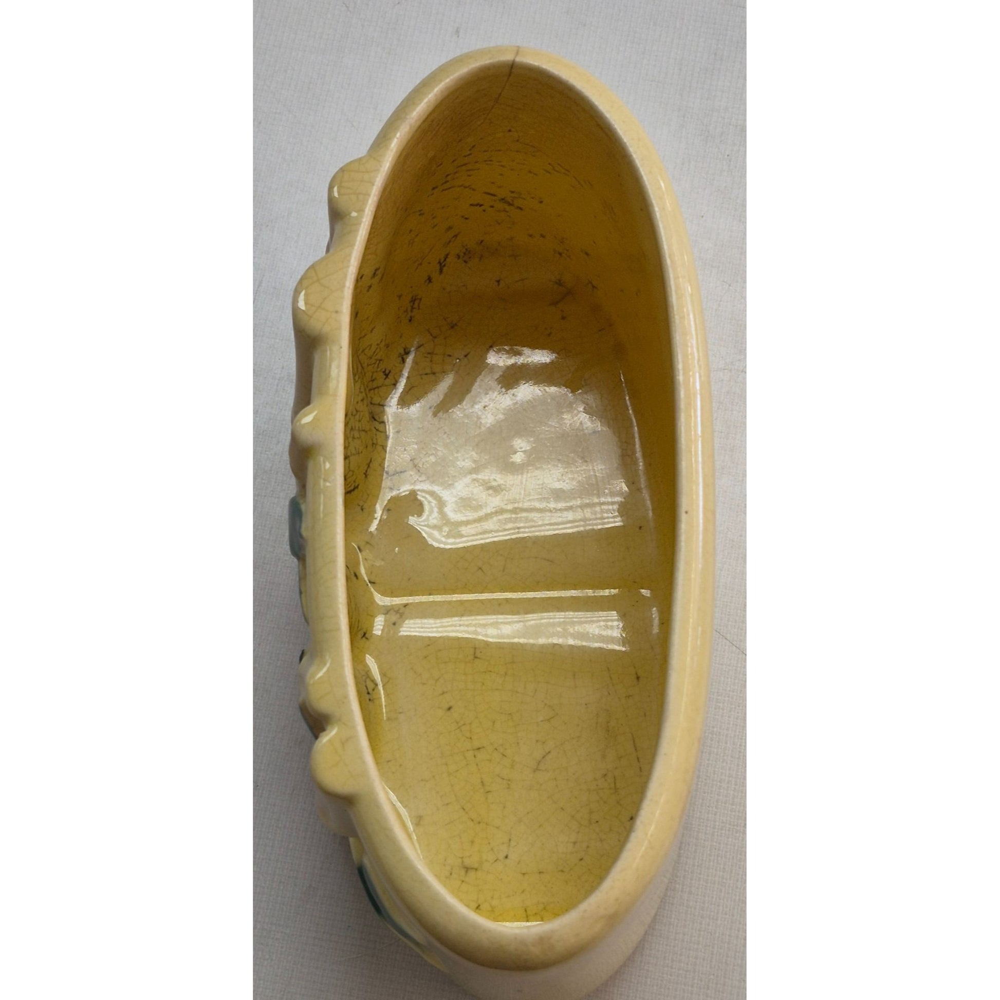 This charming vintage Royal Copley planter features a bamboo design with vibrant yellow and green leaves, making it a delightful addition to any home decor collection.