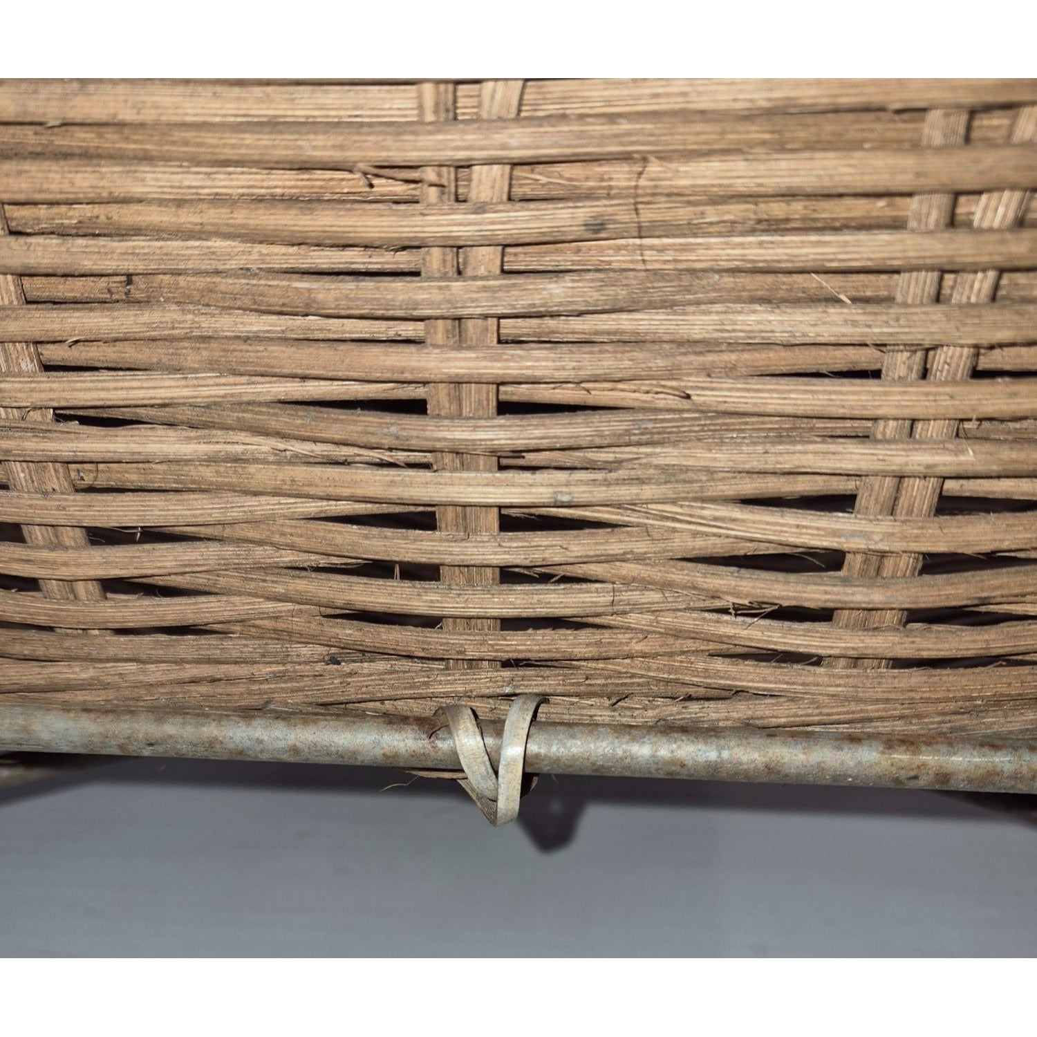 Vintage Rustic Woven Wicker Basket on Metal Stand Legs