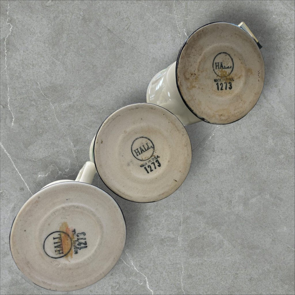 Vintage set of 3 Hall Footed Irish Coffee Mug White Black