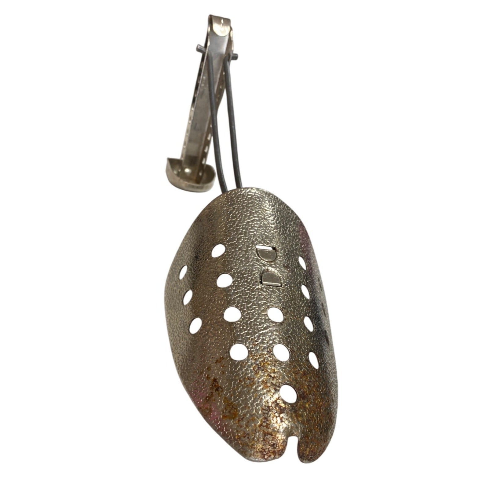 Enhance the comfort and longevity of your footwear collection with this vintage adjustable metal shoe stretcher. Its durable construction and adjustable design ensure a perfect fit for various shoe sizes, preventing discomfort and maintaining the pristine shape of your shoes. A practical addition to any shoe care regimen.