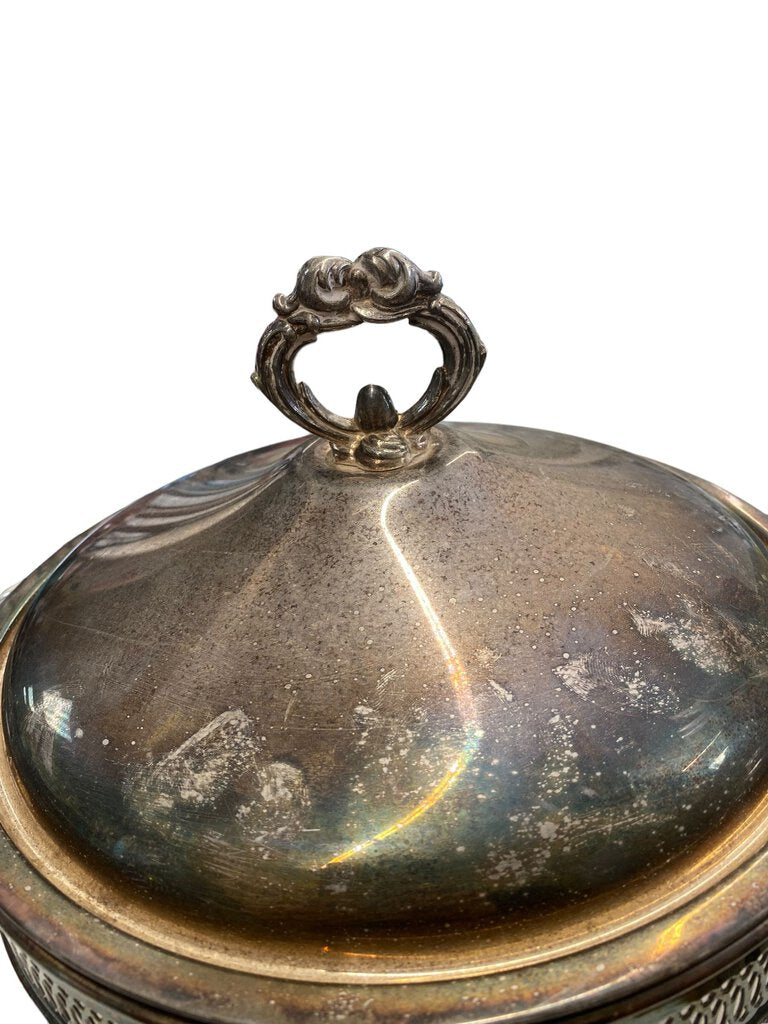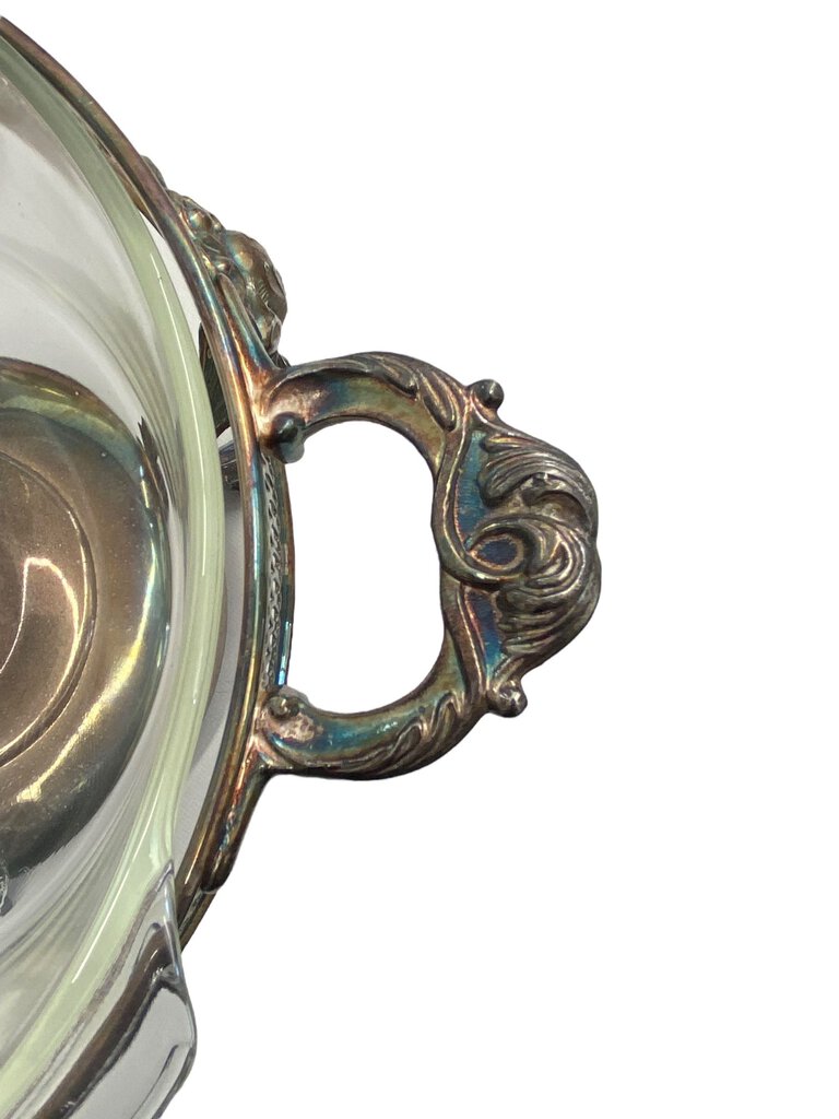 Vintage Silver Plated Three Footed Chafing Casserole Warmer 3 Quart Glass Dish