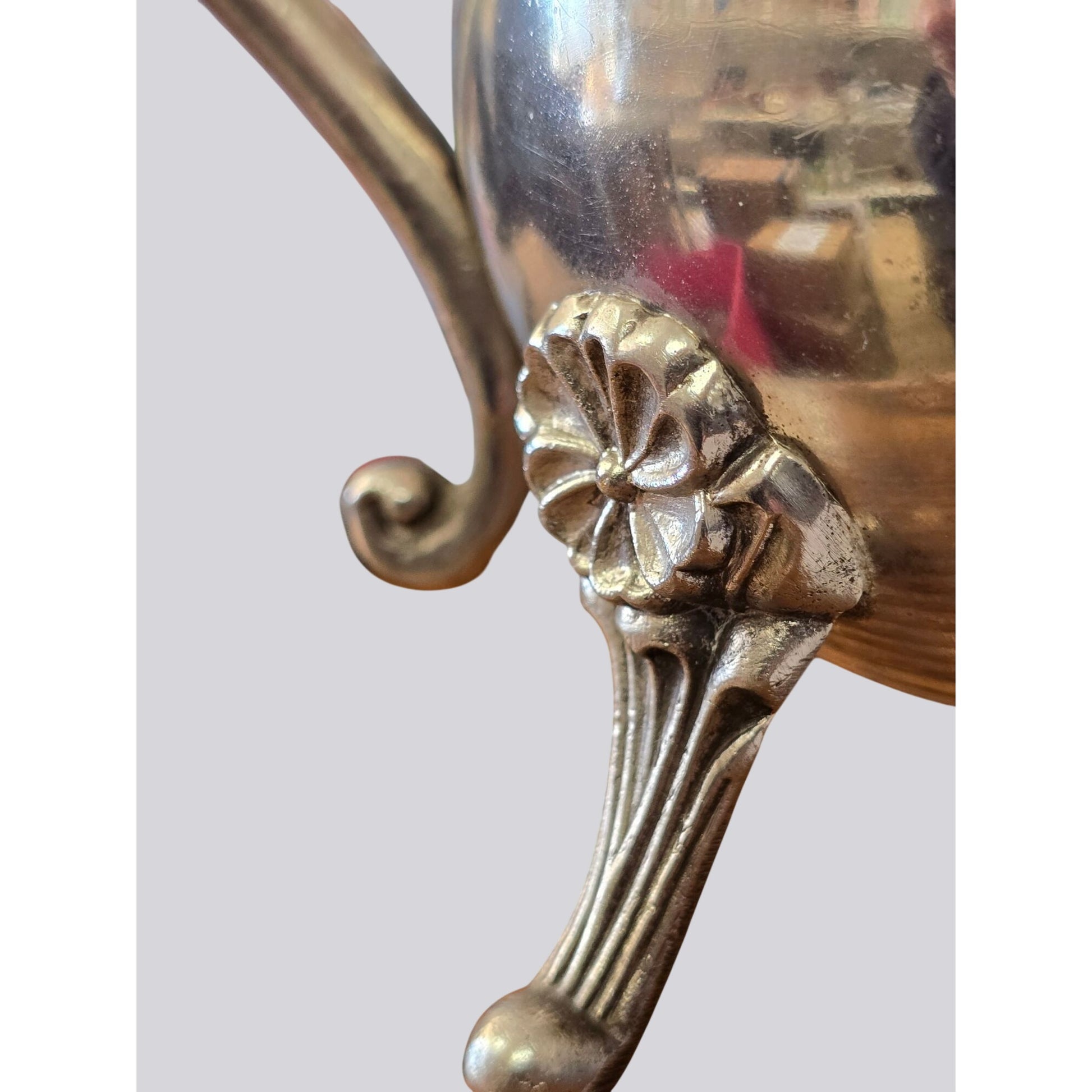 • Ornate floral-etched handle and legs