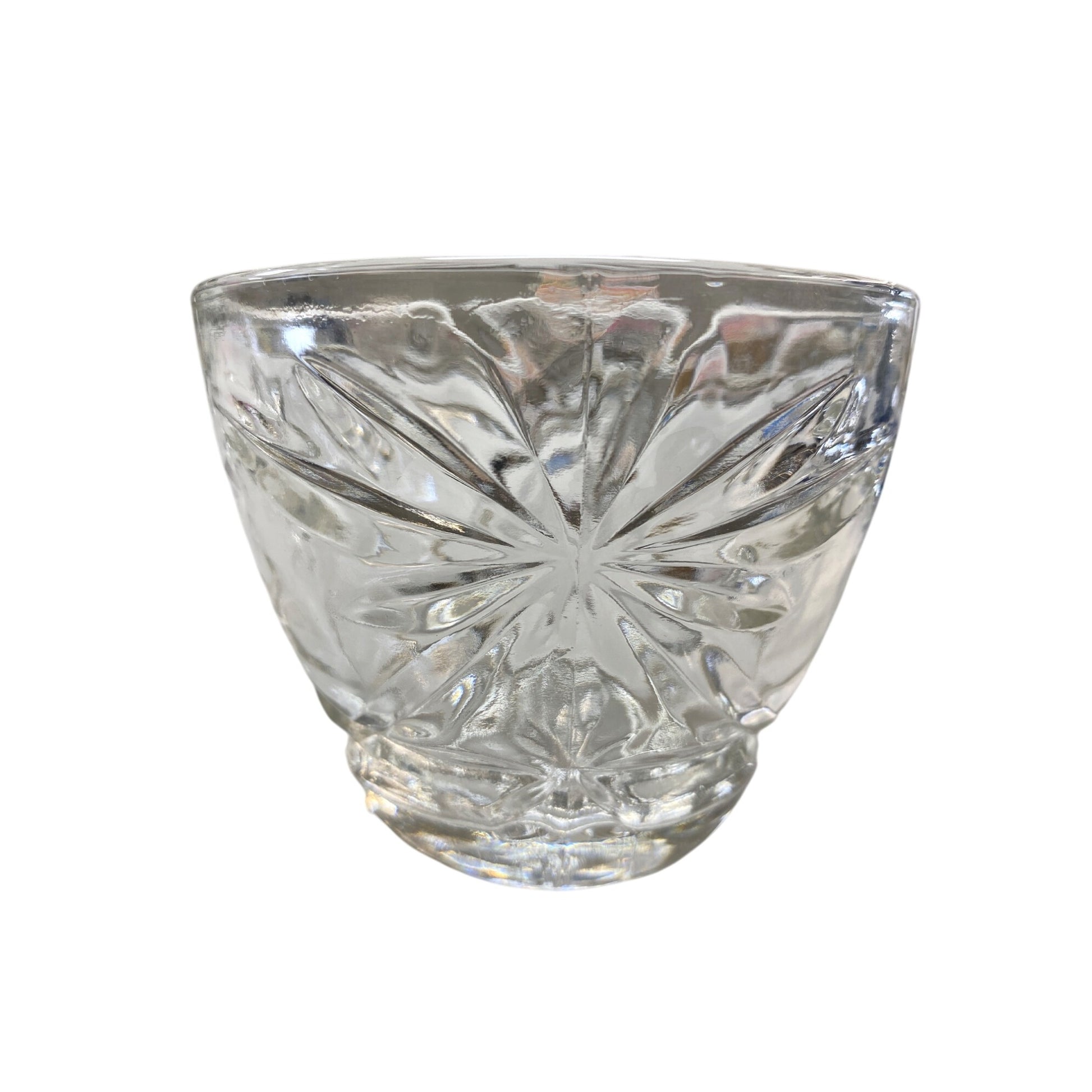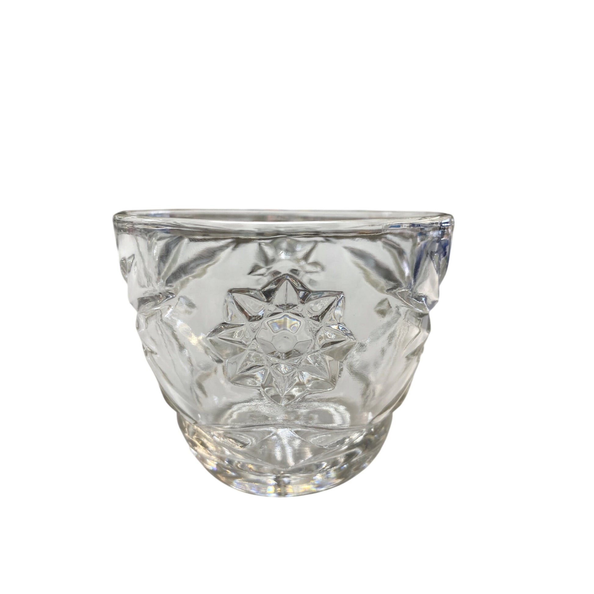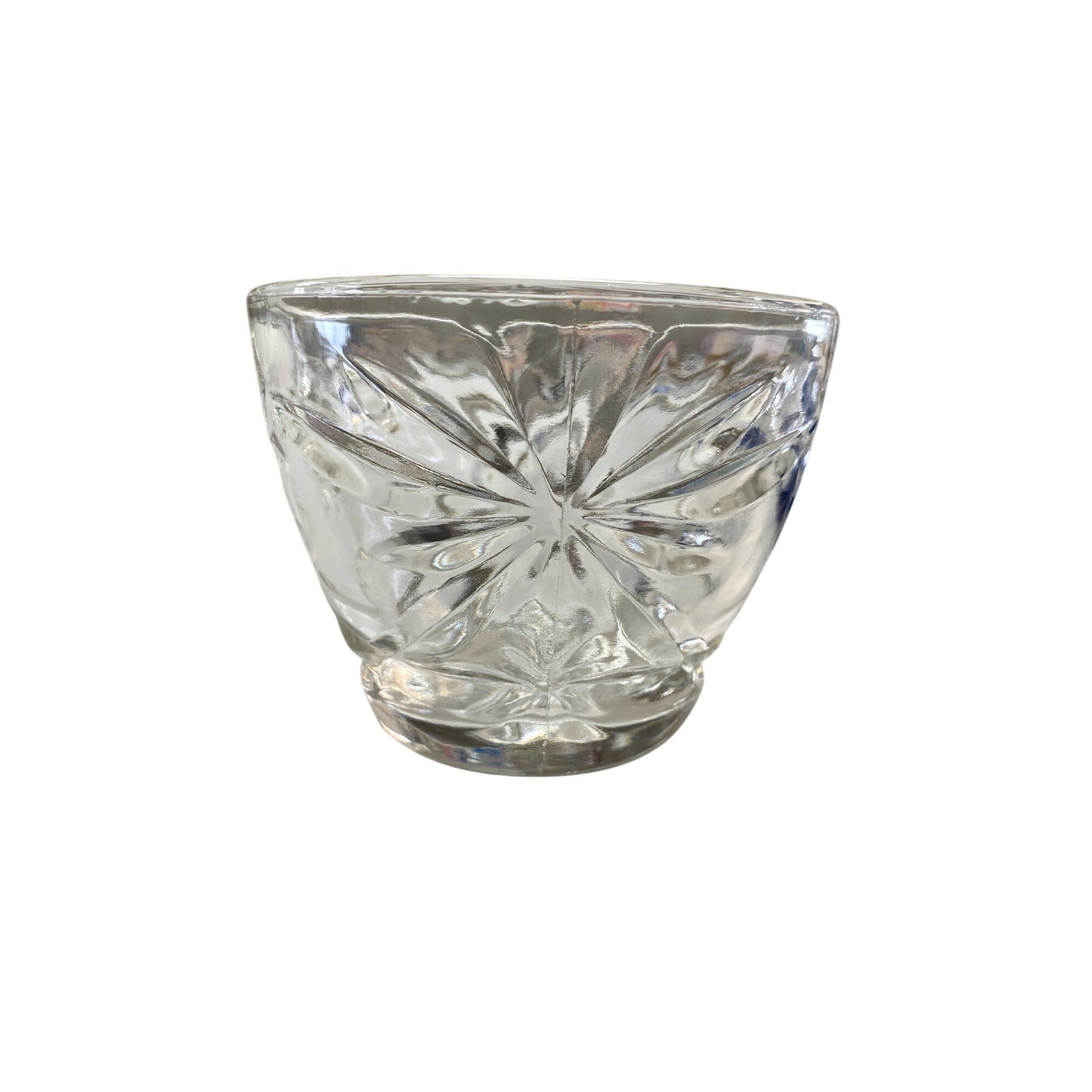 This elegant candy dish features a charming starburst design, perfect for adding sophistication to your decor or serving treats in style. Its clear pressed glass construction ensures timeless appeal.