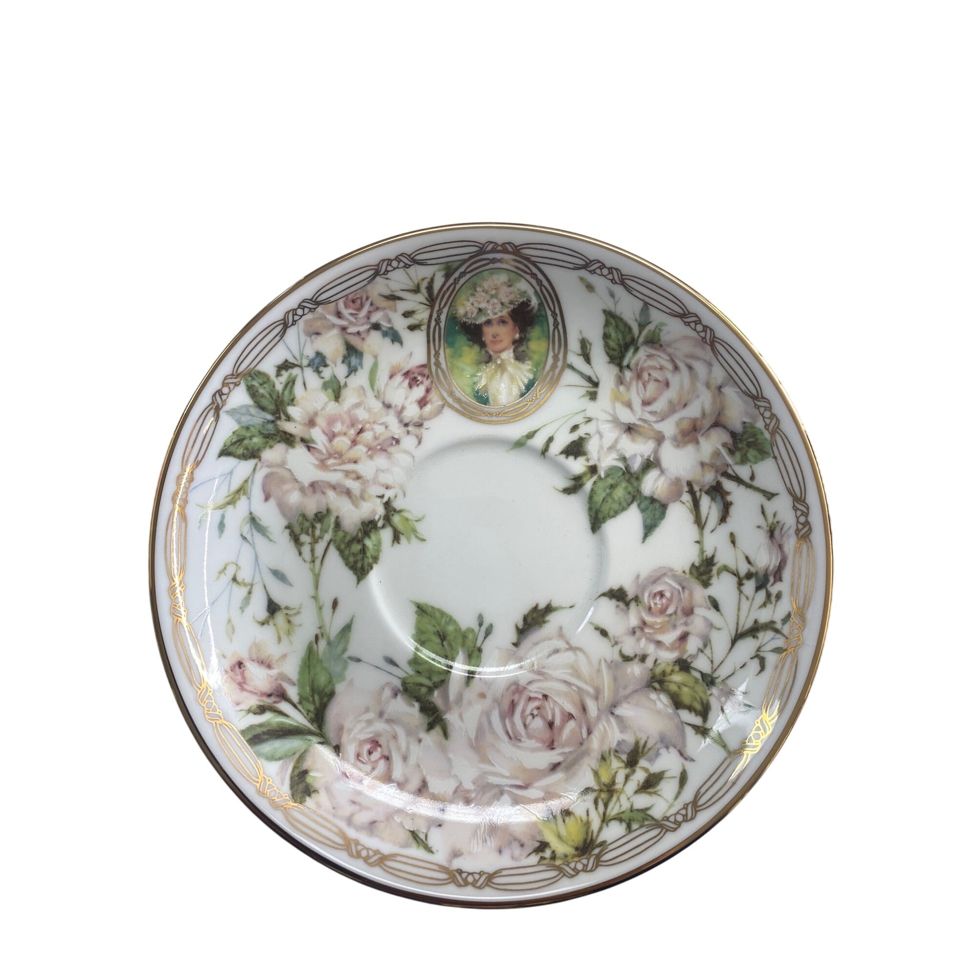 A beautifully crafted tea set with intricate floral designs, gold accents, and a delicate portrait. Adds elegance to tea time or display collections.