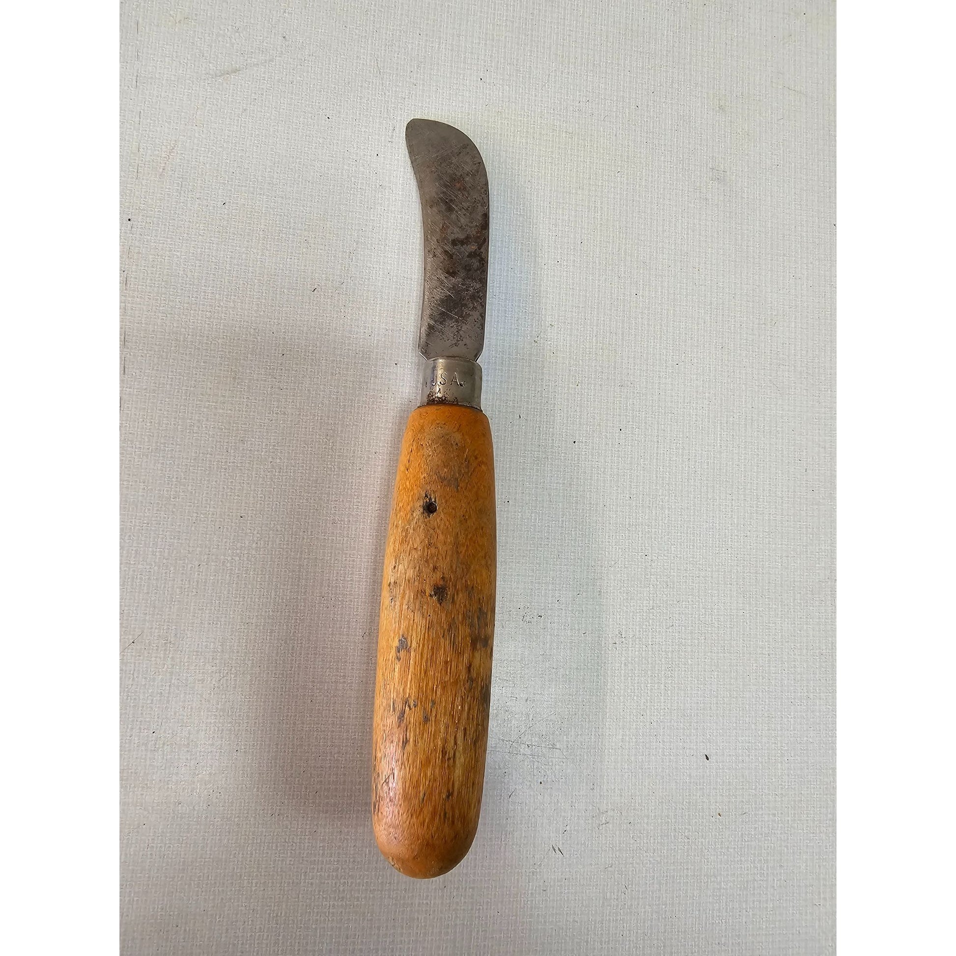 Vintage USA Linoleum Knife – Curved Blade, Wood Handle
