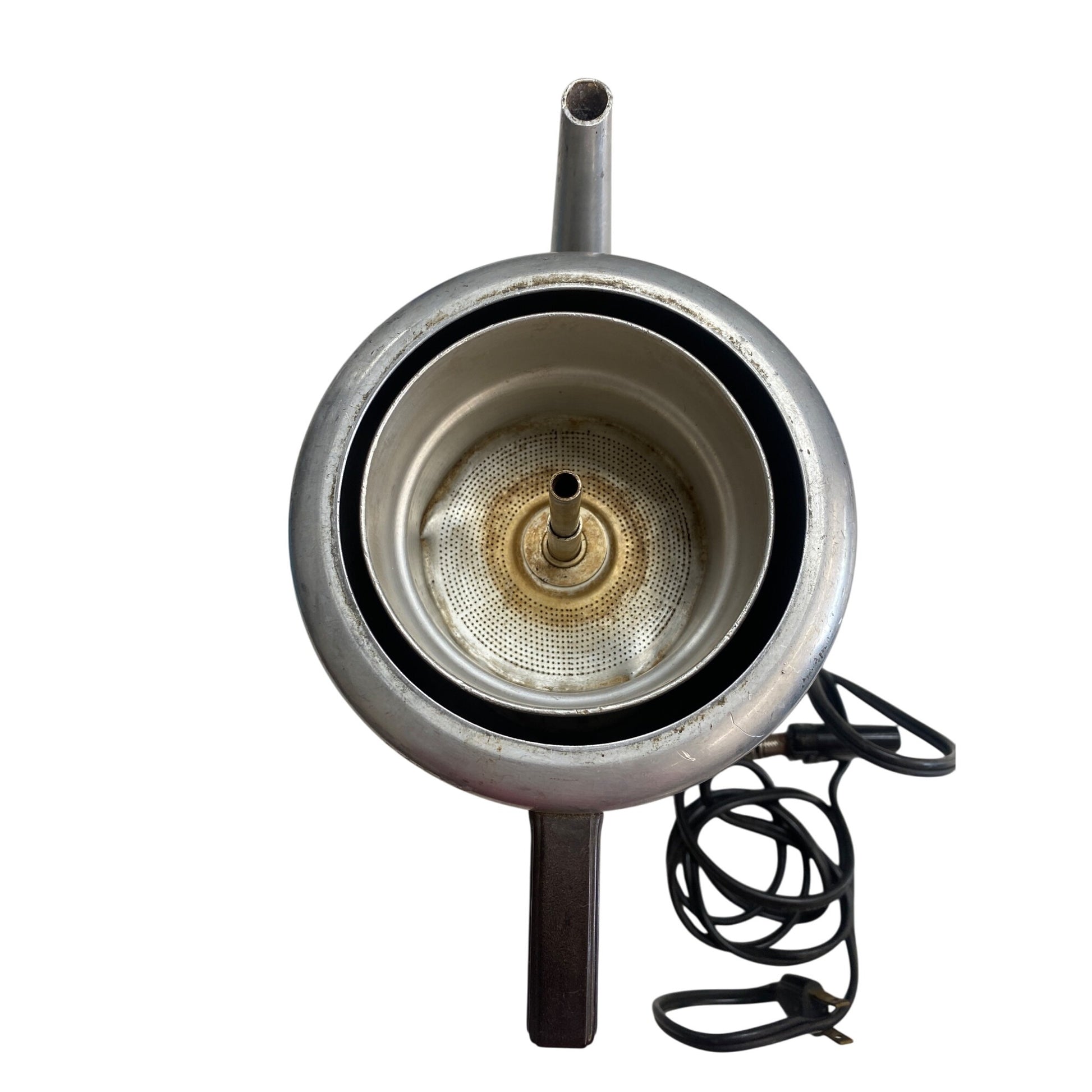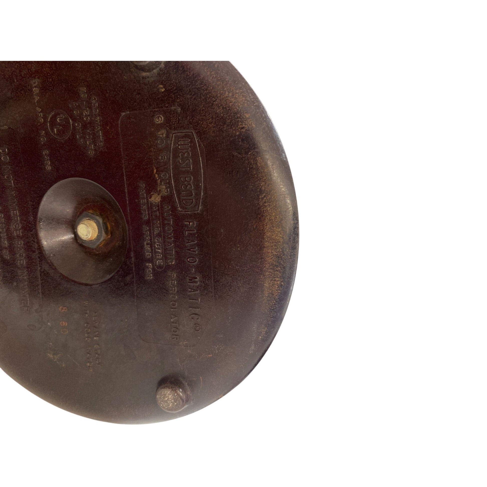 Elevate your coffee brewing experience with this vintage West Bend Flavo-Matic percolator. Crafted in durable aluminum with Bakelite accents, it combines charm and functionality.