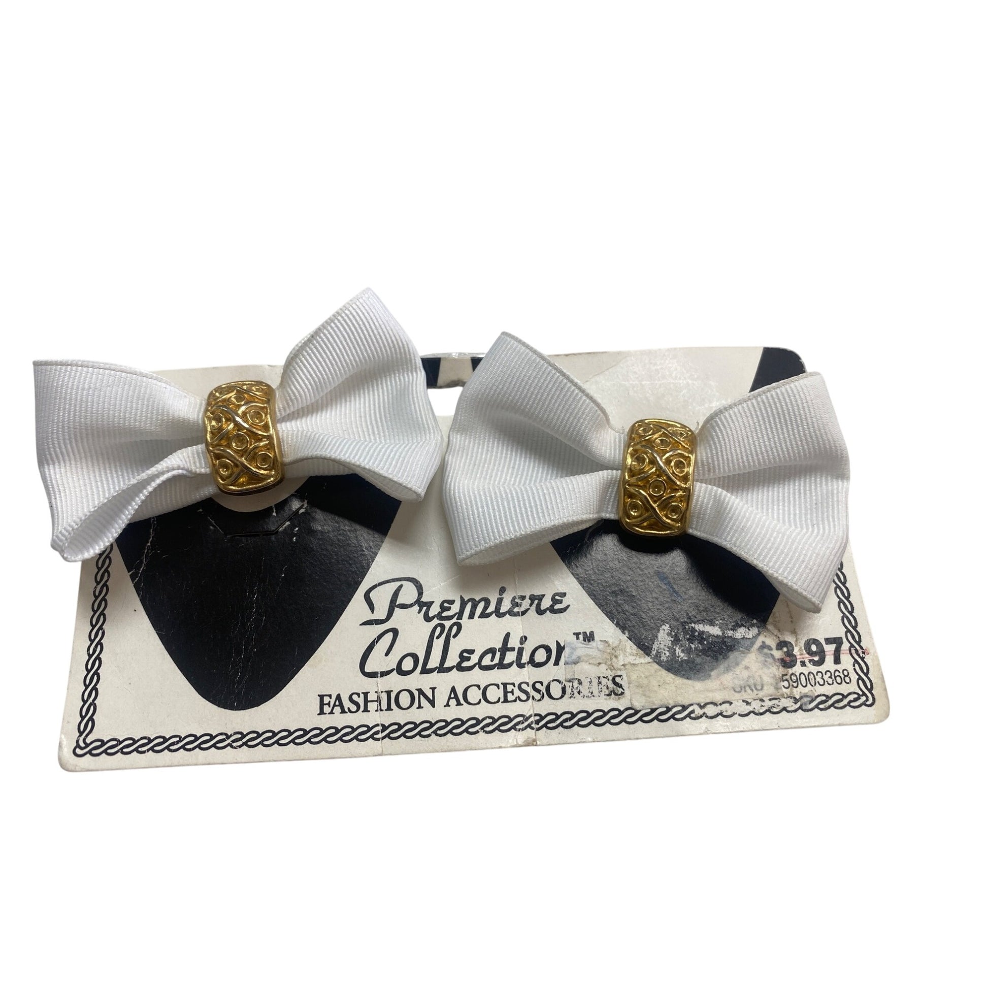 Packaging shows wear but clips are in pristine condition. Each bow measures approximately 3 inches wide.