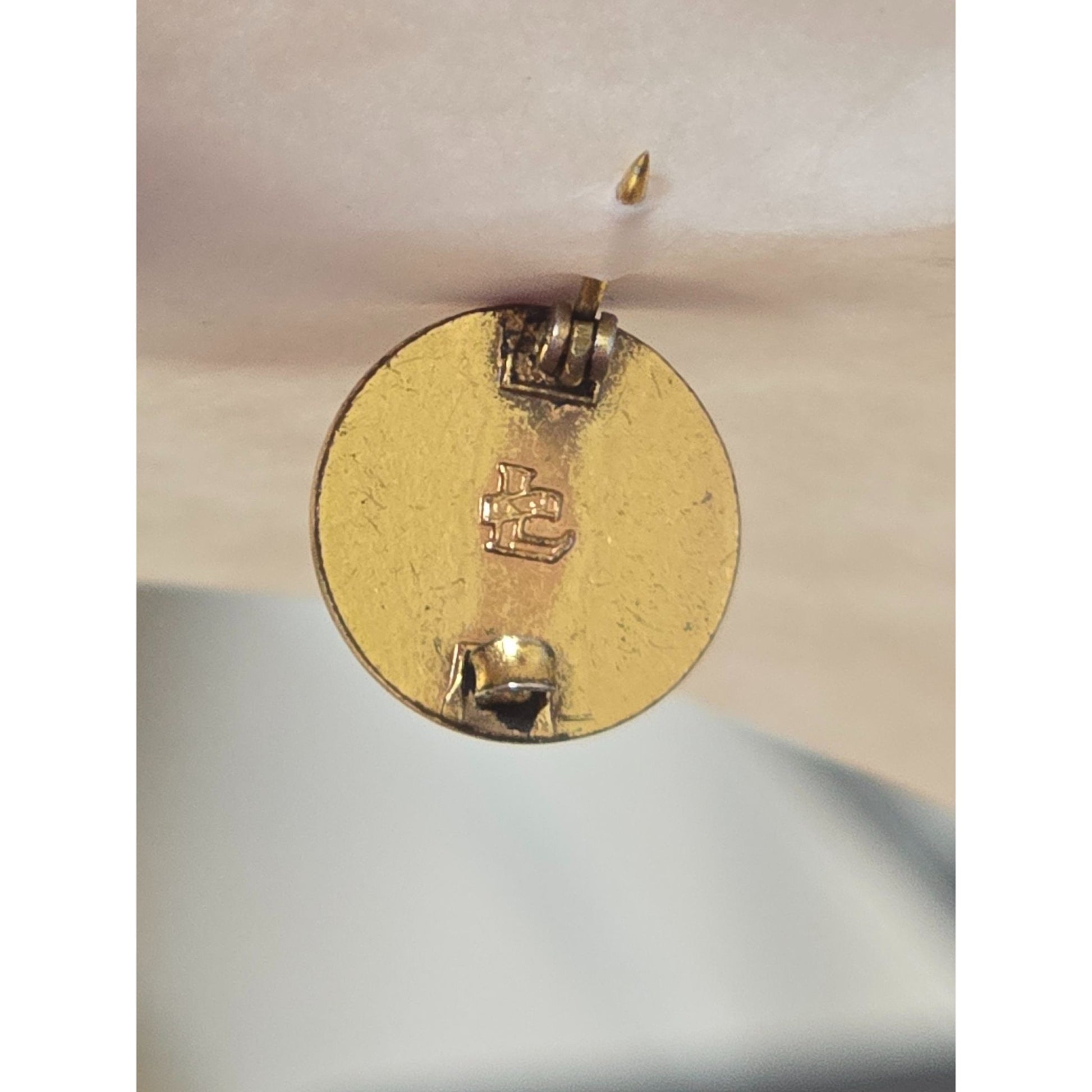 Minor surface wear on the back; overall good condition. Diameter = 0.75 inches.