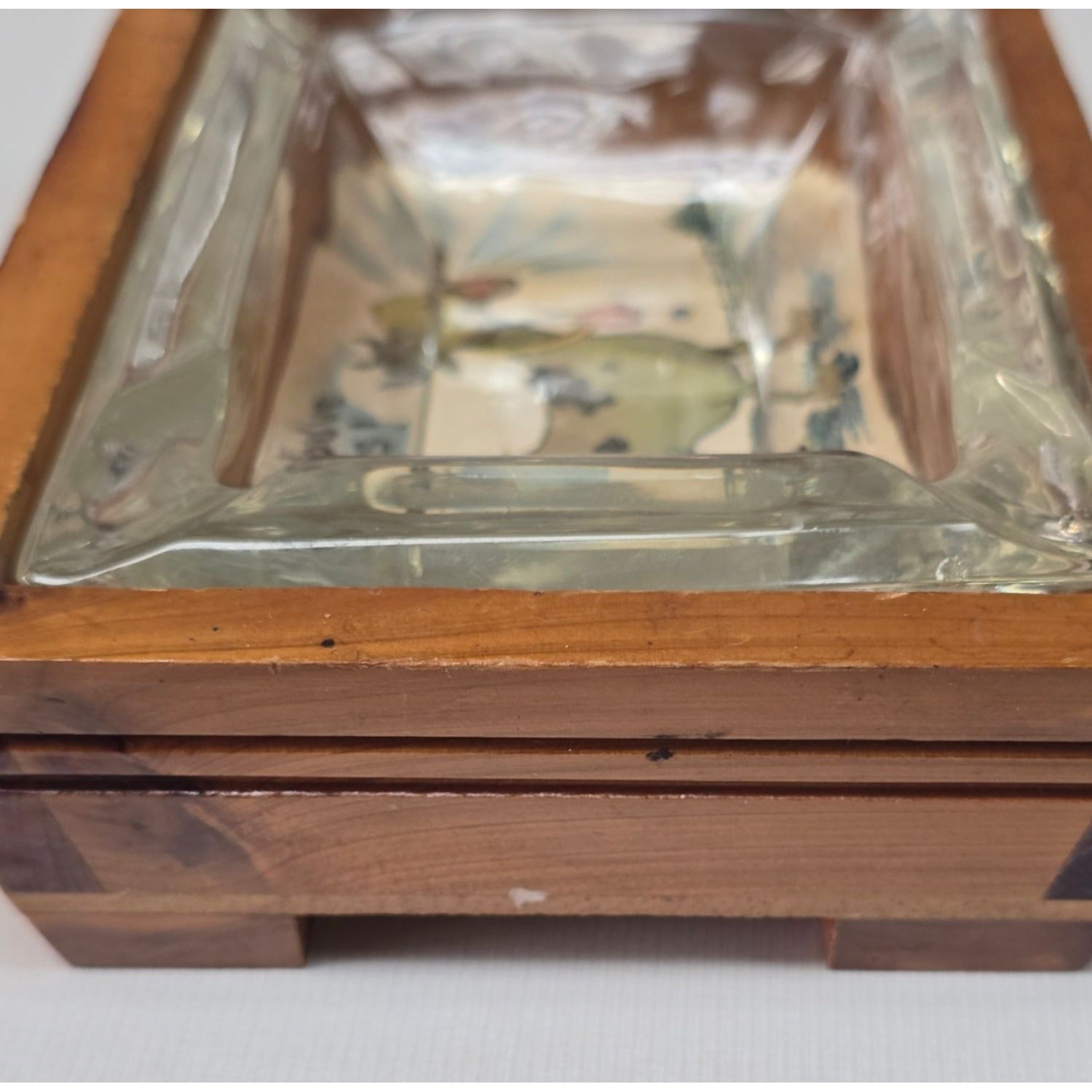 • Vintage wood ashtray holder with glass insert