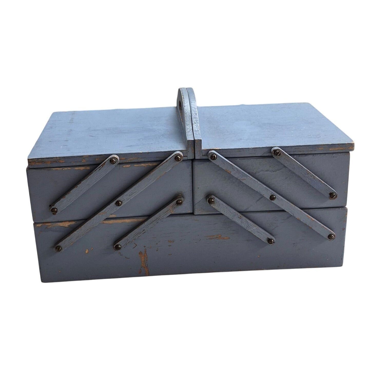 Vintage Wooden Cantilever Sewing Box Organizer