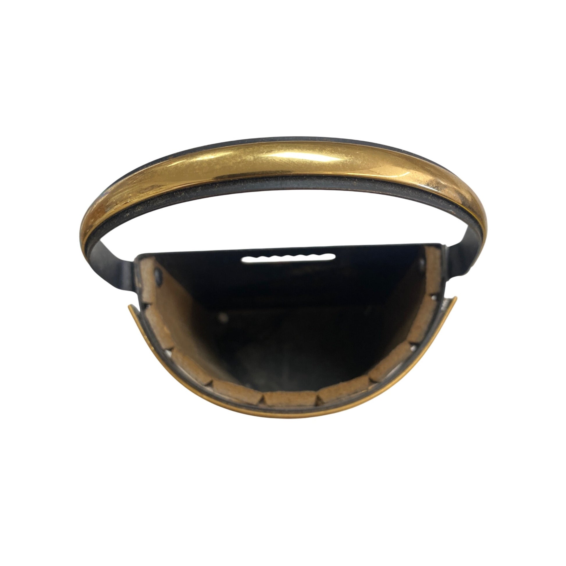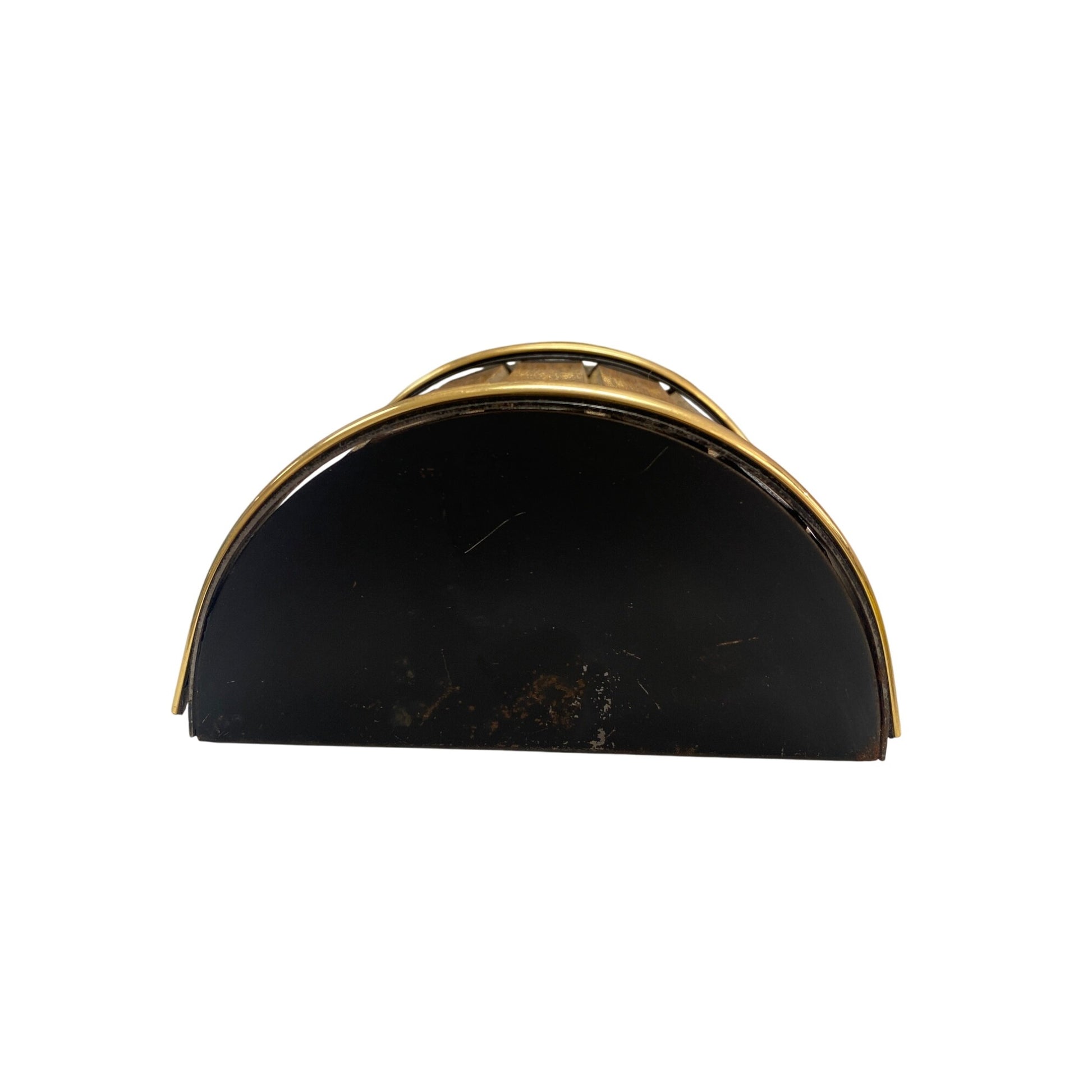 This vintage-style bucket tote combines rustic wood paneling with elegant brass accents for a functional yet aesthetic piece. A versatile addition for decor or storage.