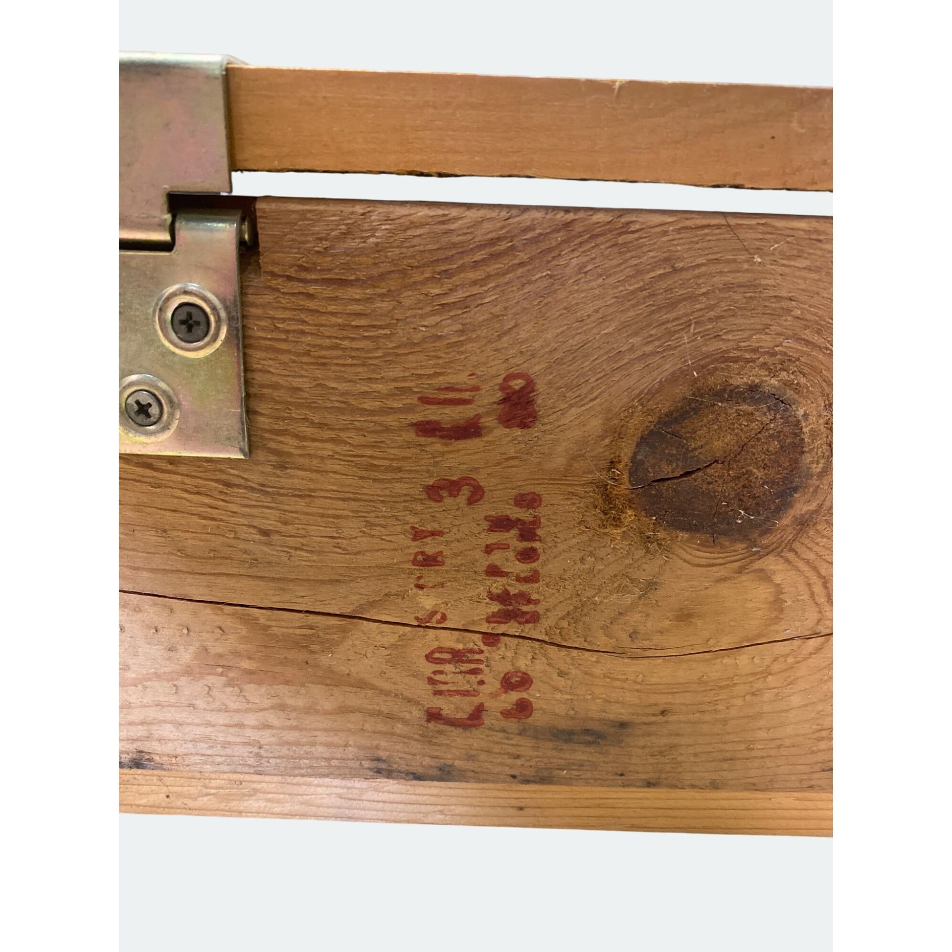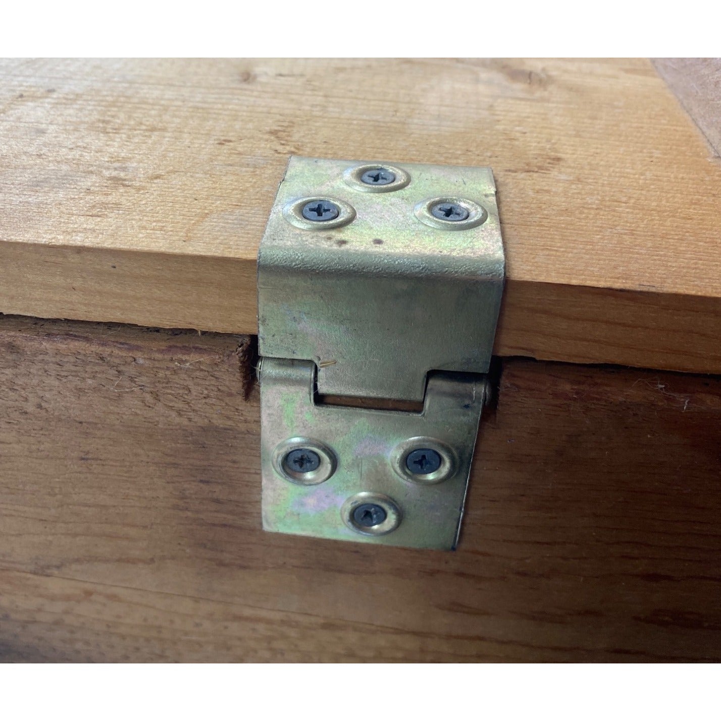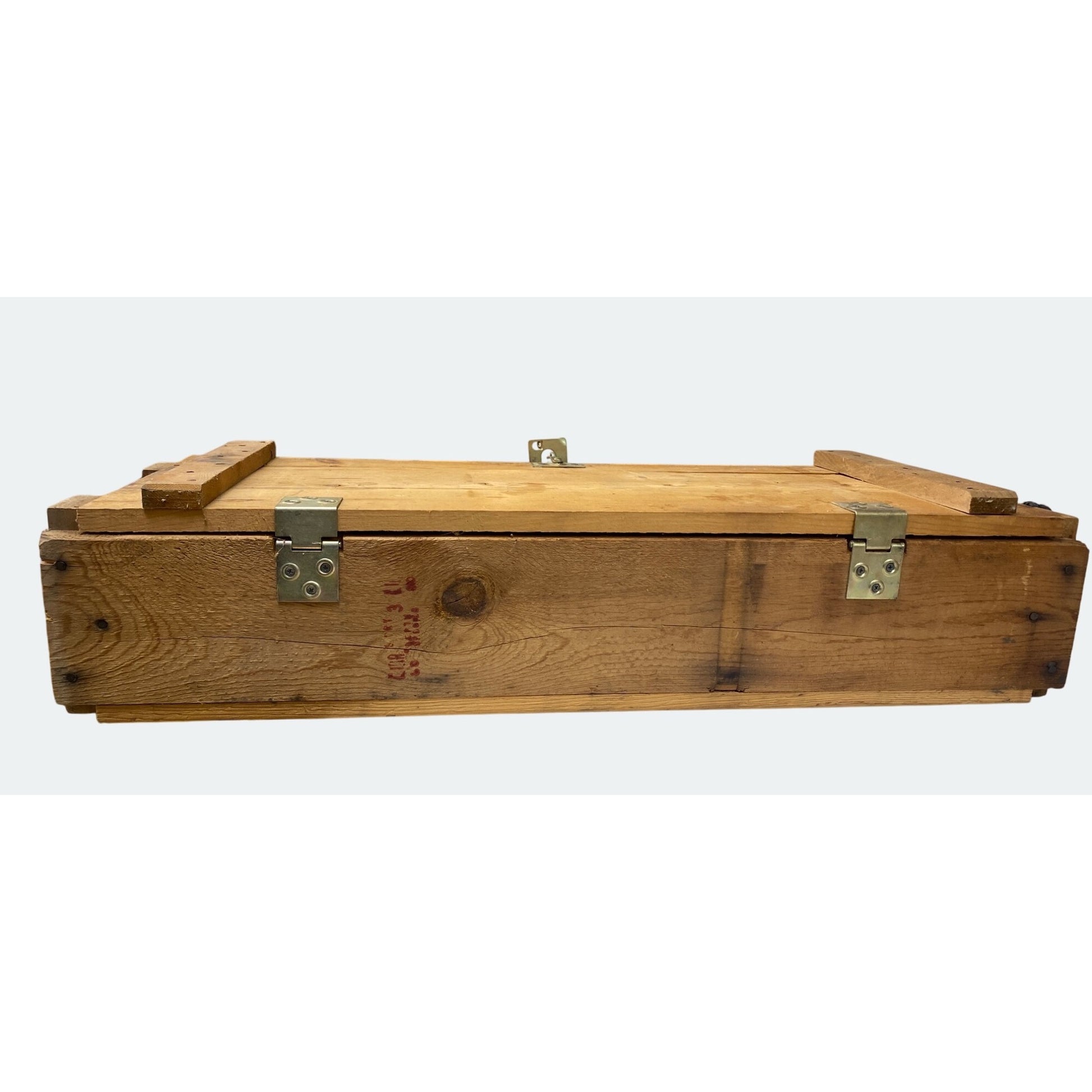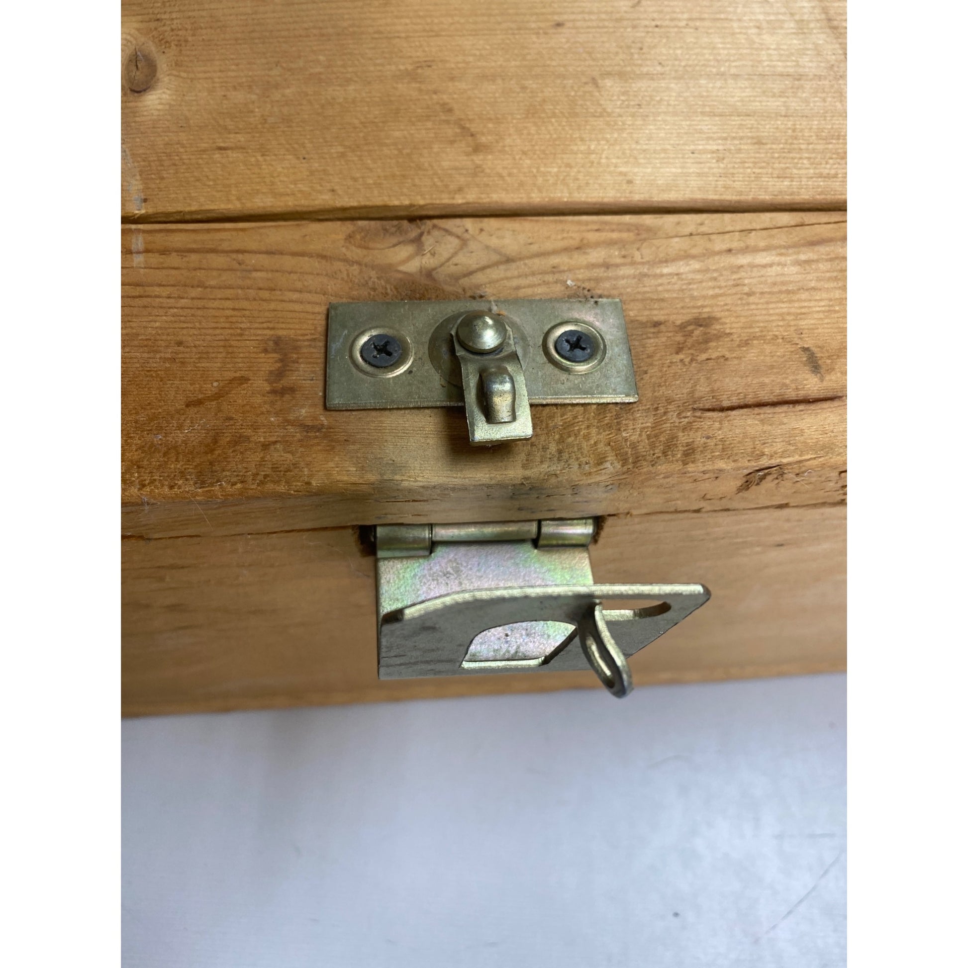 Small scratches and general wear on wood; latch and handles in good condition. Approx. 33 inches long, 12 inches wide, 7.5 inches high.
