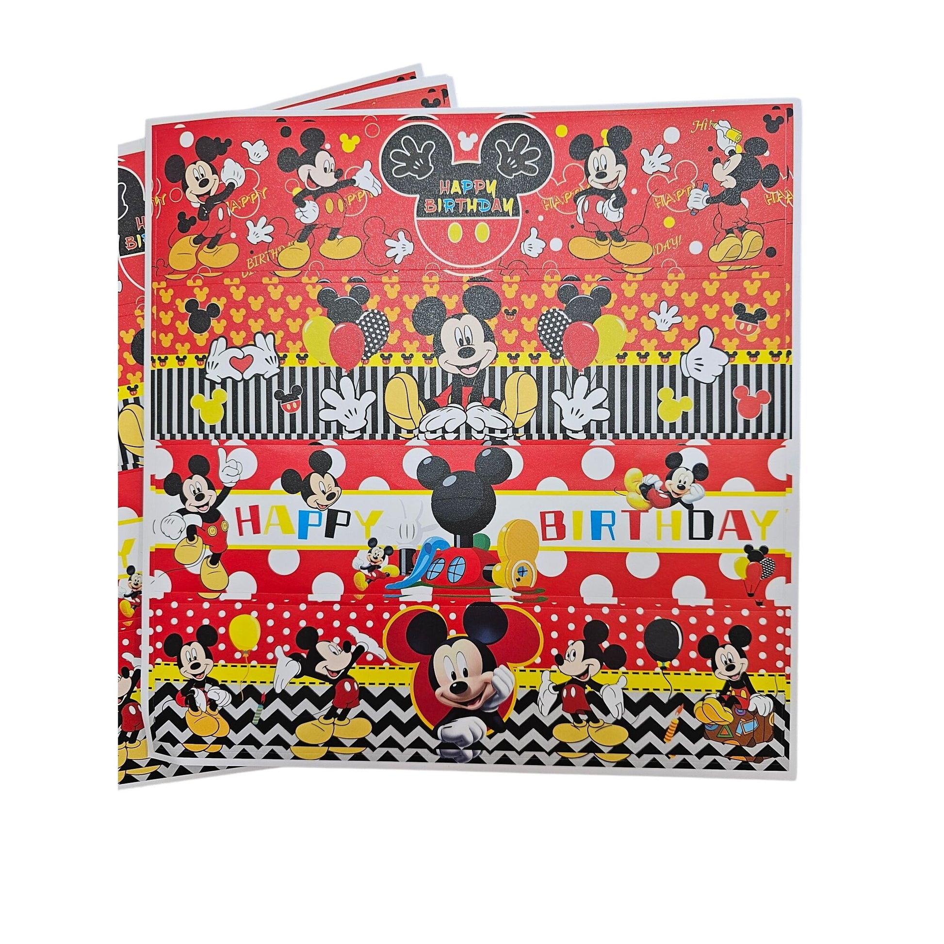 Elevate your birthday celebrations with these vibrant Mickey Mouse water bottle wrapping stickers. Featuring 4 lively designs, it's an eye-catching addition that adds joy to any Mickey Mouse themed birthday party.
