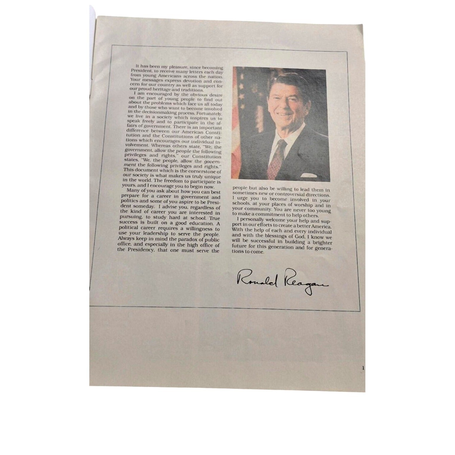 • Includes a message and photos of Ronald Reagan