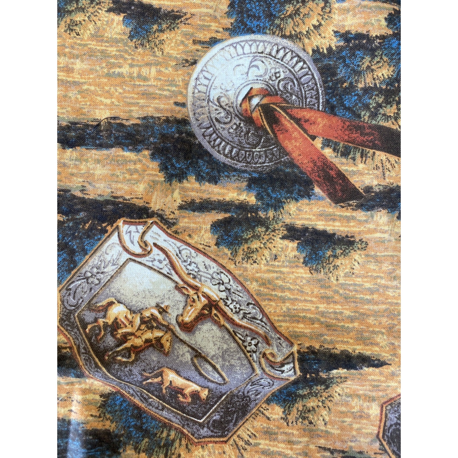This unique decorative fabric panel features an engaging Western pattern, ideal for crafting projects that capture a rustic and adventurous spirit. The striking design brings a touch of the Wild West to your home decor, making it a standout piece. Perfect for quilting, this fabric ensures a sophisticated and artistic touch to any project.
