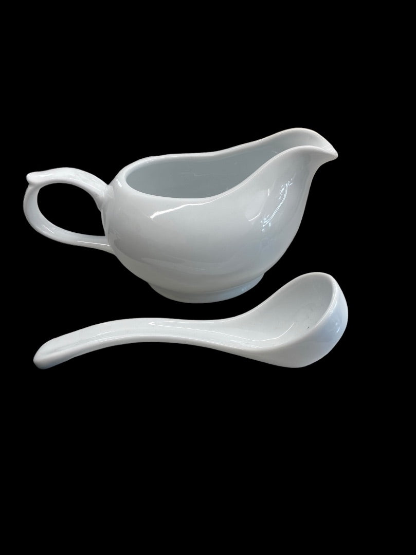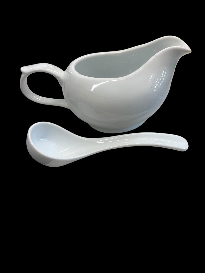 White Danesco White Gravy Boat and Spoon, No Chips Scratches, 8"x4"