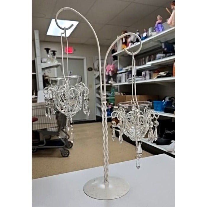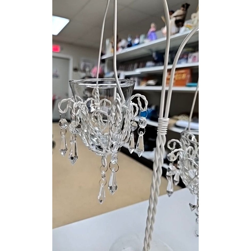White Metal Candle Holder Votive Cups & Hanging Crystals Wedding Decor Centerpiece