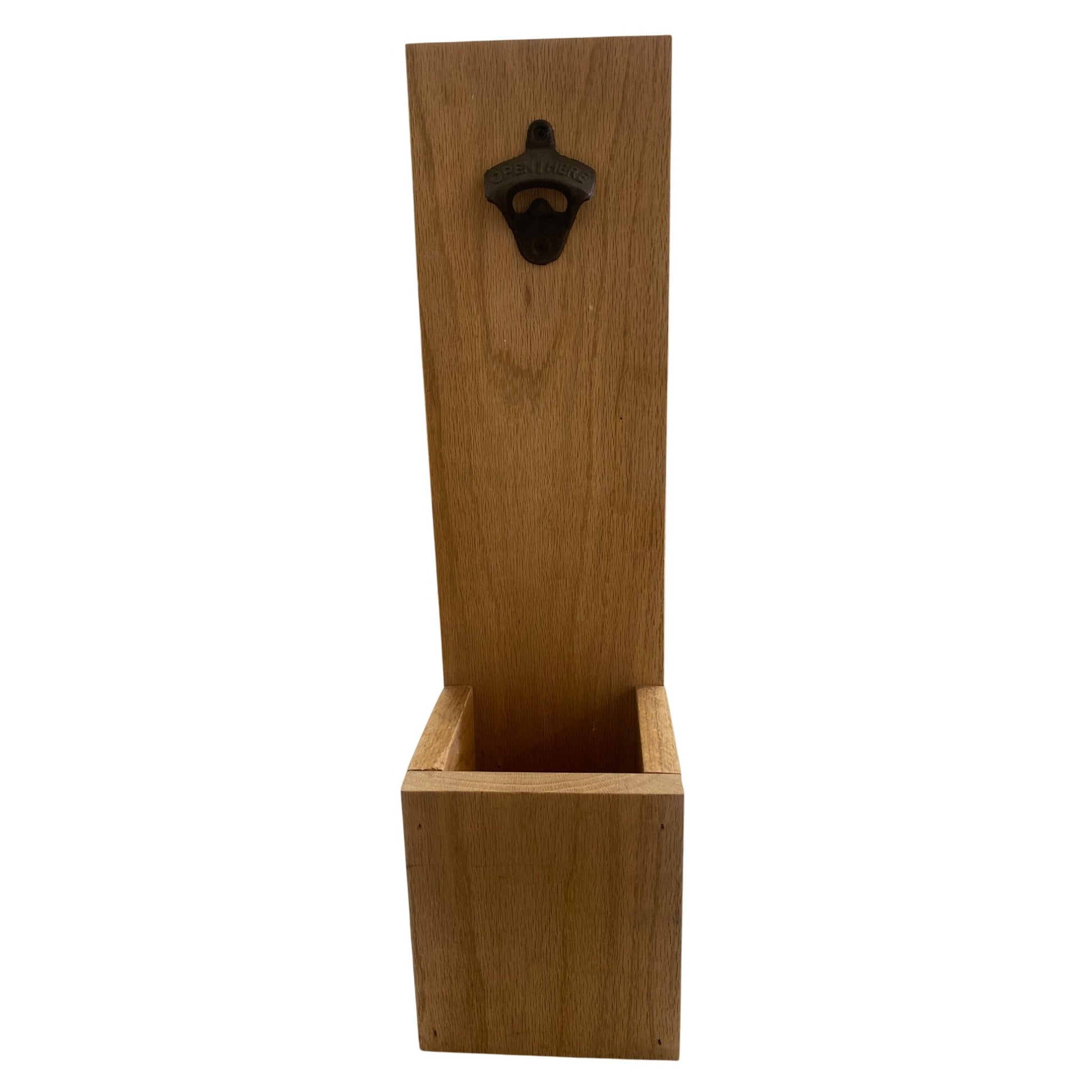 Upgrade your home bar with this stylish bottle opener. The built-in catcher box ensures caps are collected neatly, saving you cleanup time. Crafted from durable wood, this piece combines functionality and rustic charm, making it a practical yet decorative addition to any kitchen or bar area.