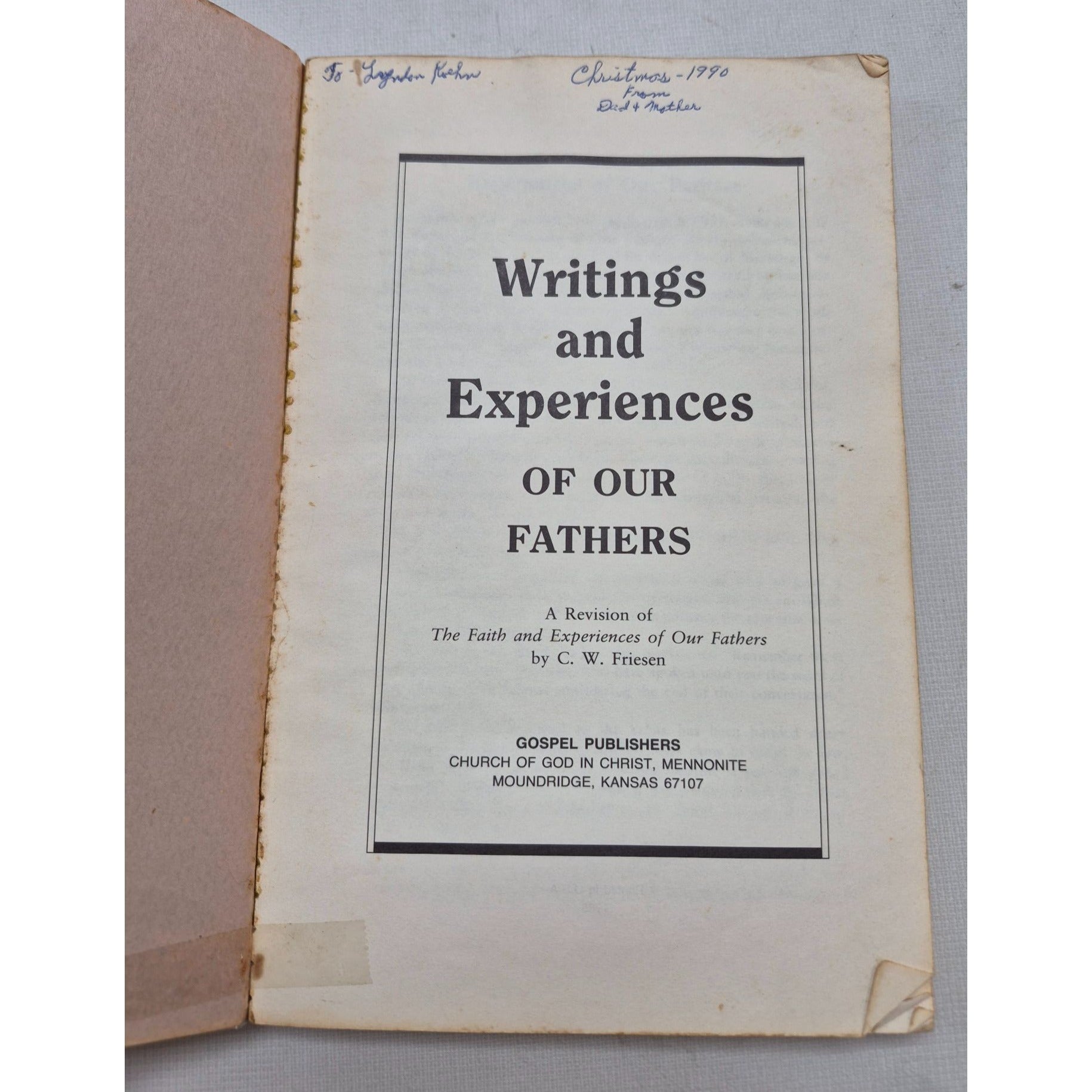 Writings & Experiences Of Our Fathers Book By C.W. Friesen 1970 Gospel Publishers